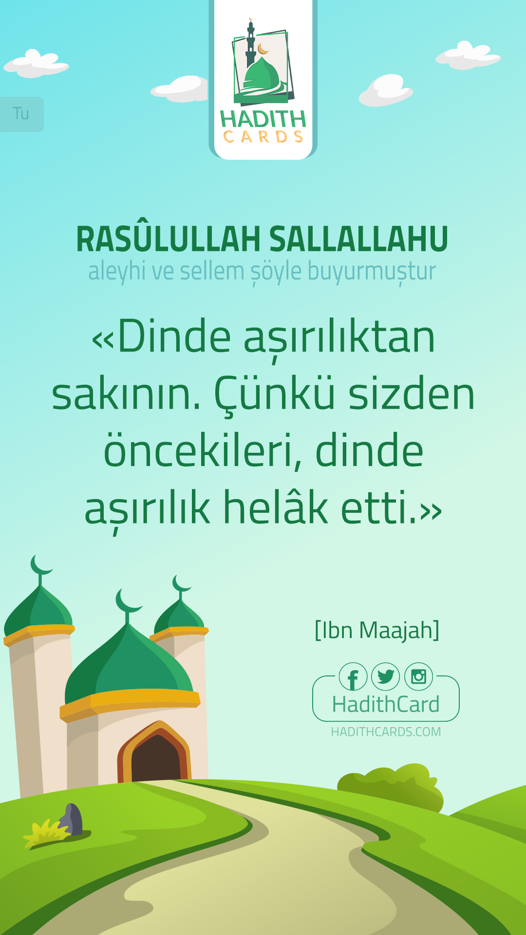 Dinde aşırılıktan sakının. Çünkü sizden öncekileri, dinde aşırılık helâk etti
