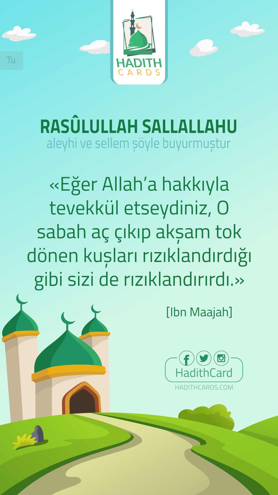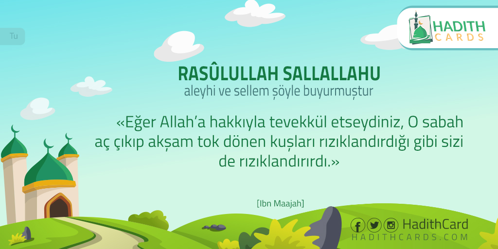 Eğer Allah’a hakkıyla tevekkül etseydiniz, O sabah aç çıkıp akşam tok dönen kuşları rızıklandırdığı gibi sizi de rızıklandırırdı