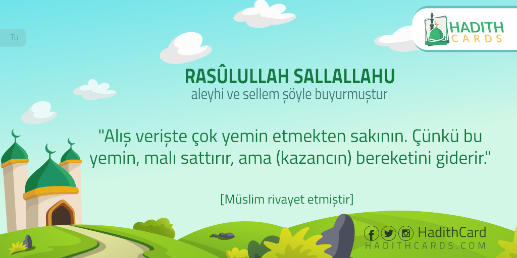 Alış verişte çok yemin etmekten sakının. Çünkü bu yemin, malı sattırır, ama (kazancın) bereketini giderir