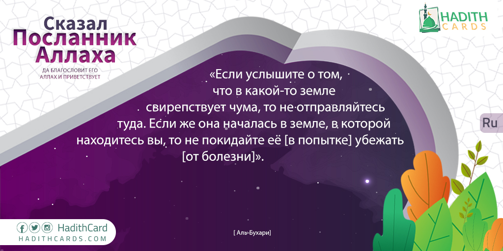 Если услышите о том, что в какой-то земле свирепствует чума, то не отправляйтесь туда. Если же она началась в земле, в которой находитесь вы, то не покидайте её [в попытке] убежать [от болезни]