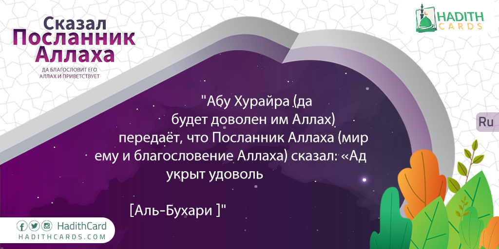 Абу Хурайра (да будет доволен им Аллах) передаёт, что Посланник Аллаха (мир ему и благословение Аллаха) сказал: «Ад укрыт удоволь