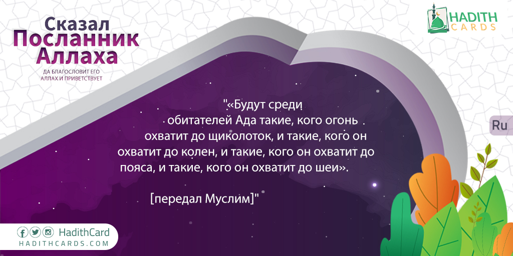 Будут среди обитателей Ада такие, кого огонь охватит до щиколоток, и такие, кого он охватит до колен, и такие, кого он охватит до пояса, и такие, кого он охватит до шеи