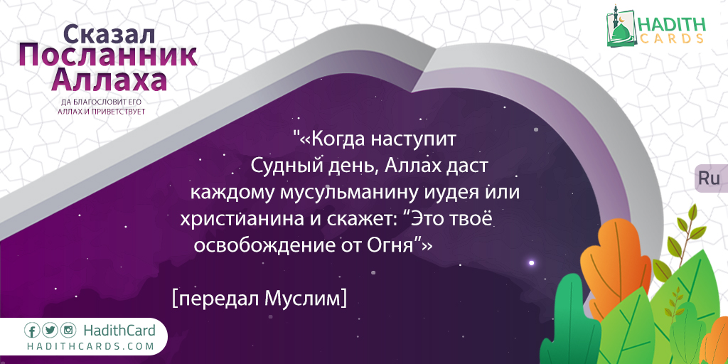 Когда наступит Судный день, Аллах даст каждому мусульманину иудея или христианина и скажет: “Это твоё освобождение от Огня