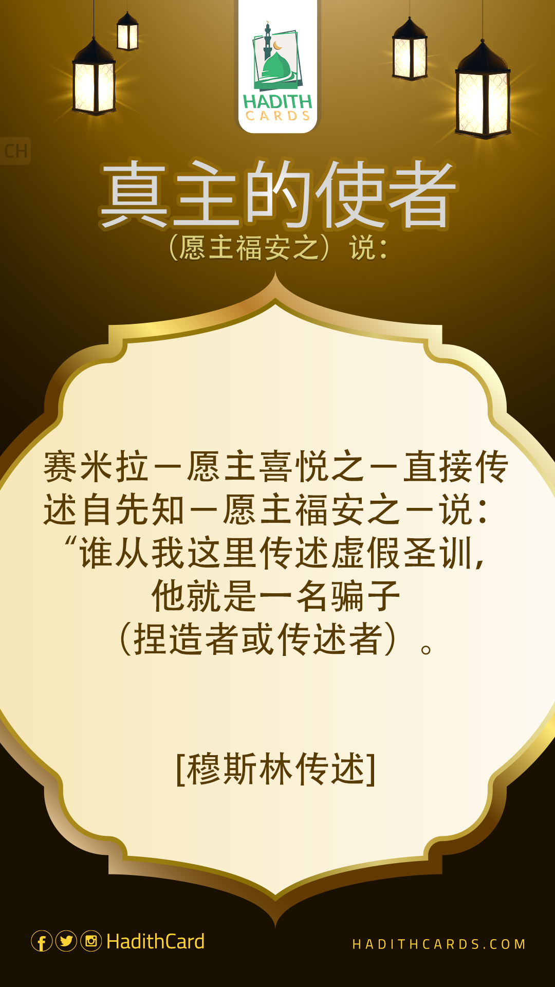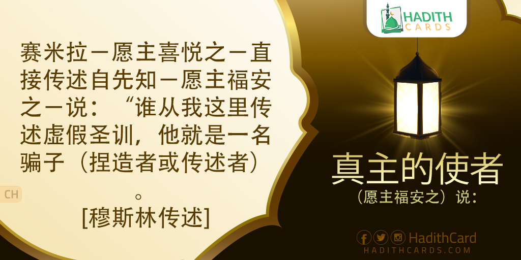 赛米拉-愿主喜悦之-直接传述自先知-愿主福安之-说:“谁从我这里传述虚假圣训,他就是一名骗子(捏造者或传述者)。