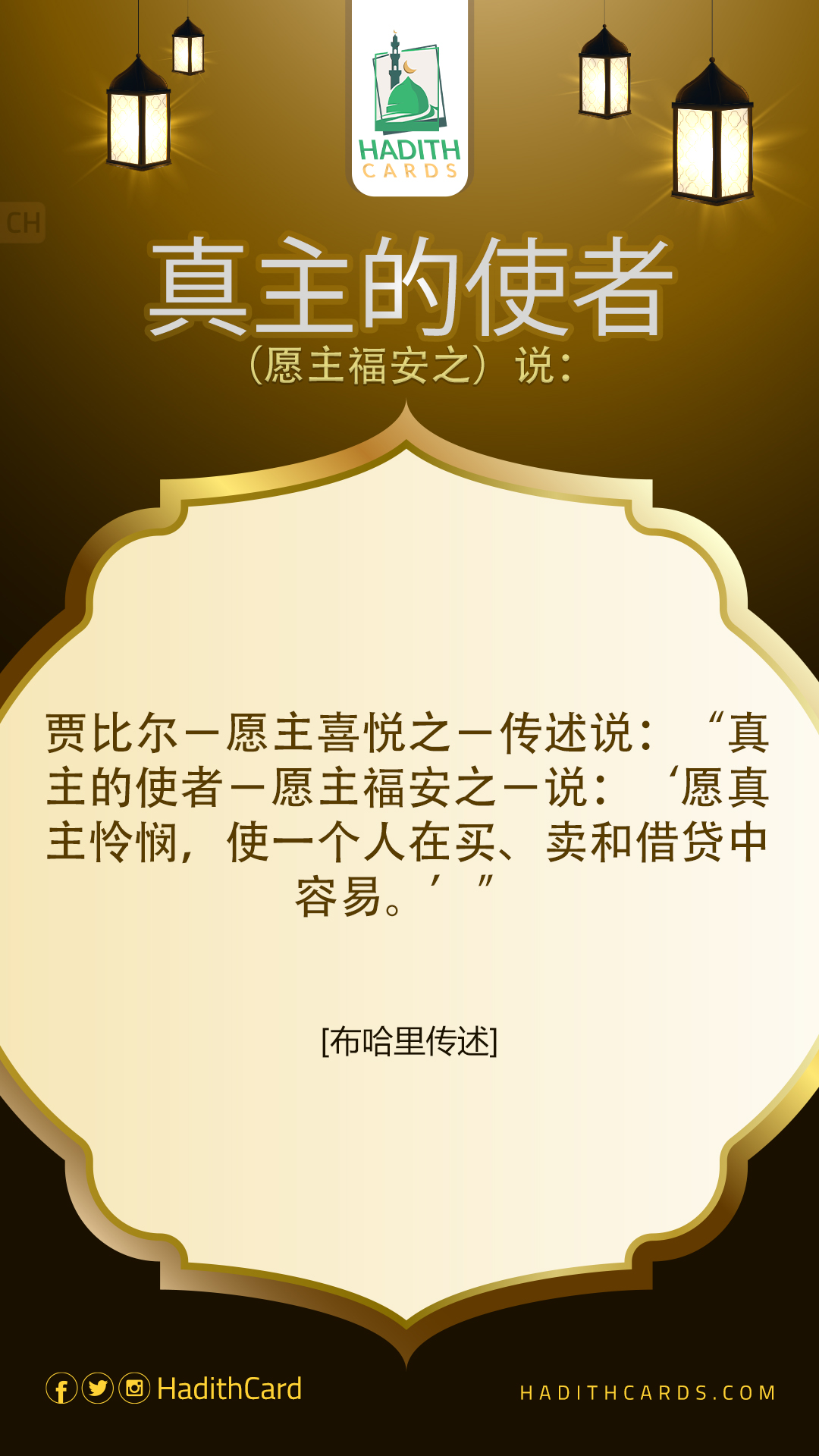 贾比尔-愿主喜悦之-传述说:“真主的使者-愿主福安之-说:‘愿真主怜悯,使一个人在买、卖和借贷中容易