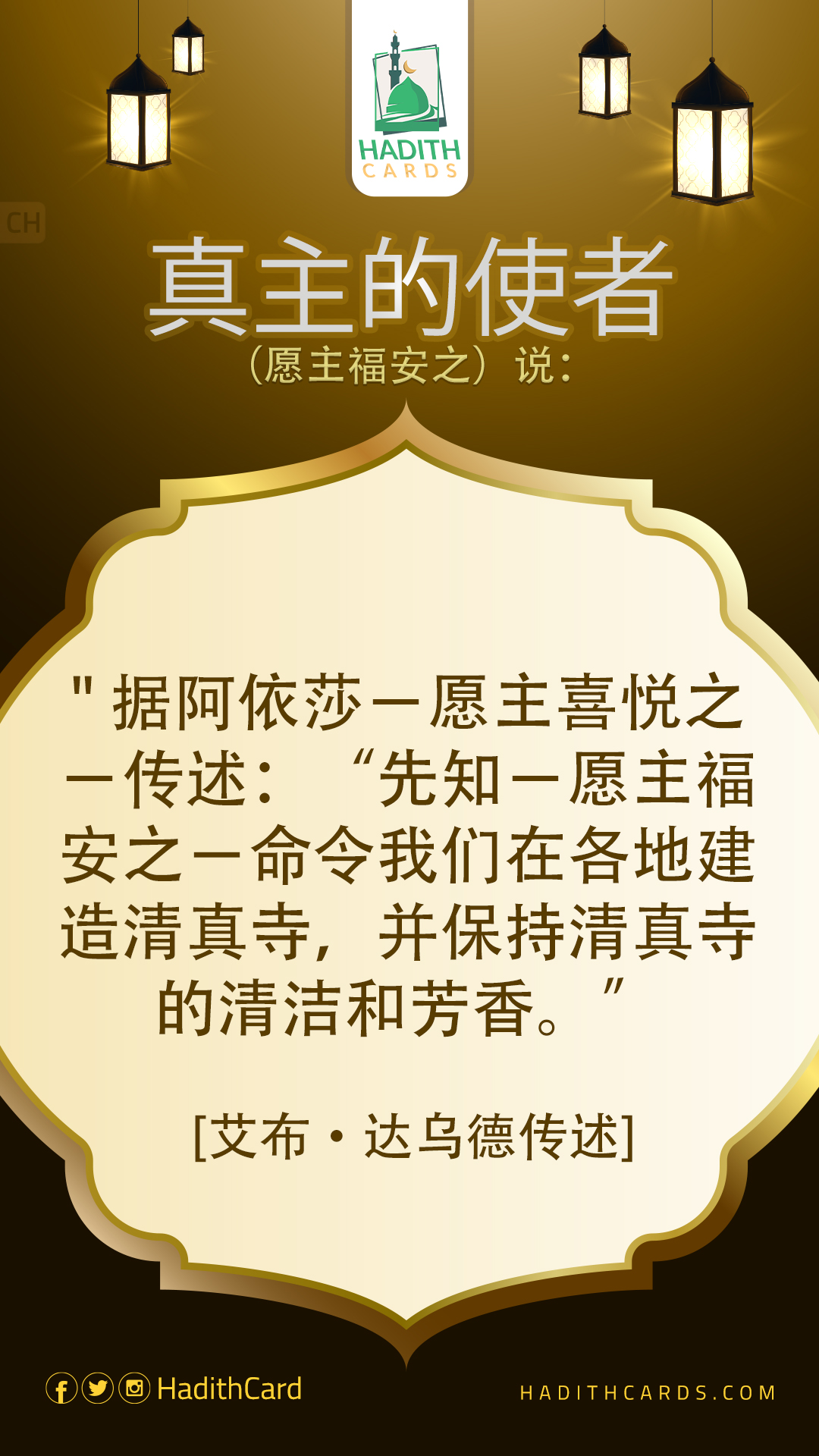 据阿依莎-愿主喜悦之-传述:“先知-愿主福安之-命令我们在各地建造清真寺,并保持清真寺的清洁和芳香
