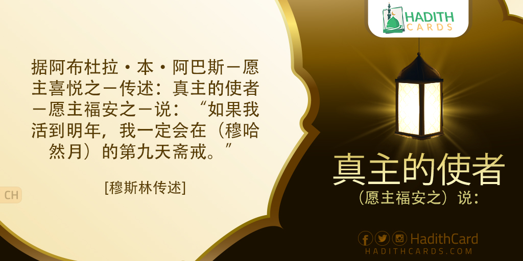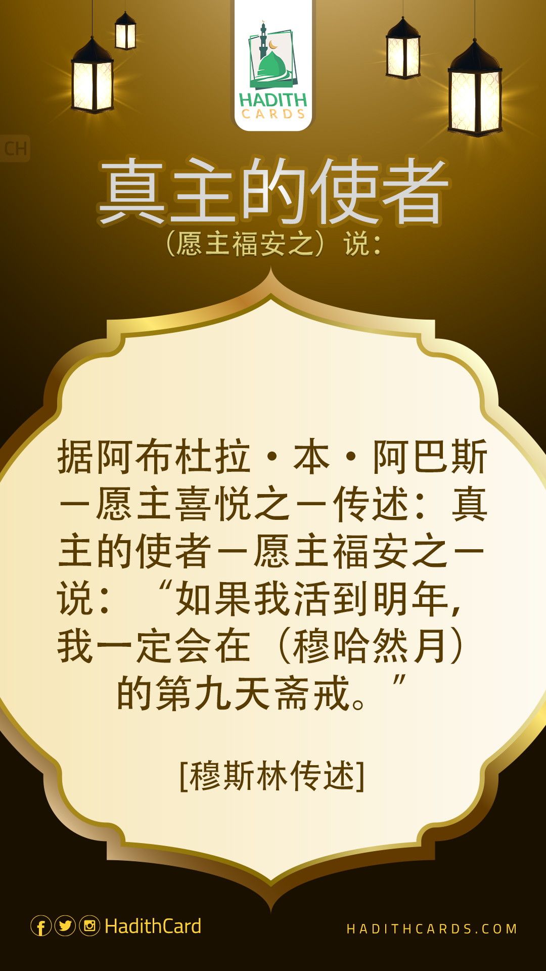 据阿布杜拉·本·阿巴斯-愿主喜悦之-传述:真主的使者-愿主福安之-说:“如果我活到明年,我一定会在(穆哈然月)的第九天斋戒