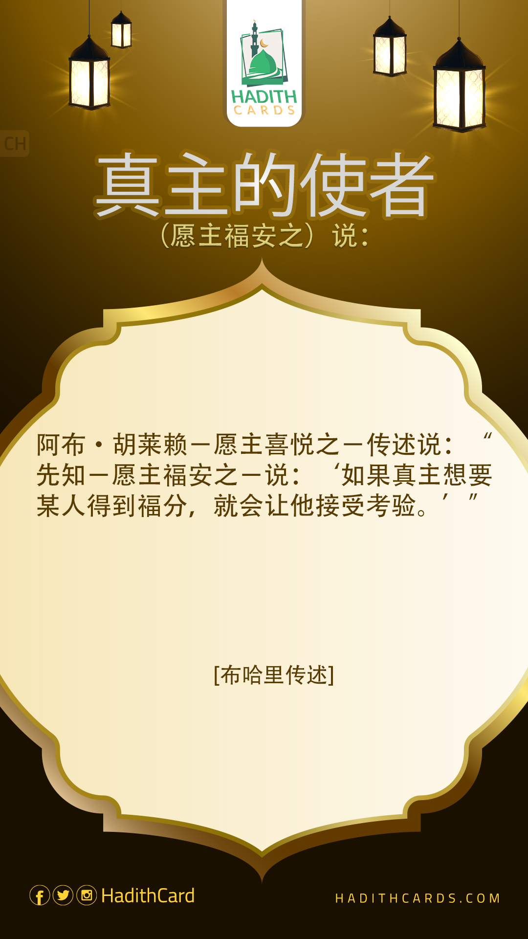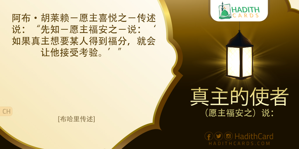 阿布·胡莱赖-愿主喜悦之-传述说:“先知-愿主福安之-说:‘如果真主想要某人得到福分,就会让他接受考验
