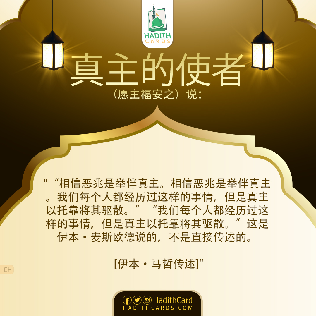 相信恶兆是举伴真主。相信恶兆是举伴真主。我们每个人都经历过这样的事情,但是真主以托靠将其驱散。”“我们每个人都经历过这样的事情,但是真主以托靠将其驱散。”这是伊本·麦斯欧德说的,不是直接传述的。