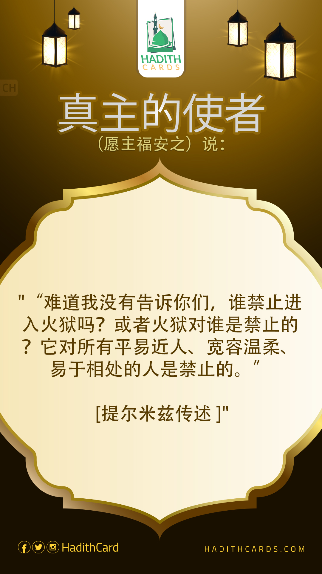 难道我没有告诉你们,谁禁止进入火狱吗?或者火狱对谁是禁止的?它对所有平易近人、宽容温柔、易于相处的人是禁止的。