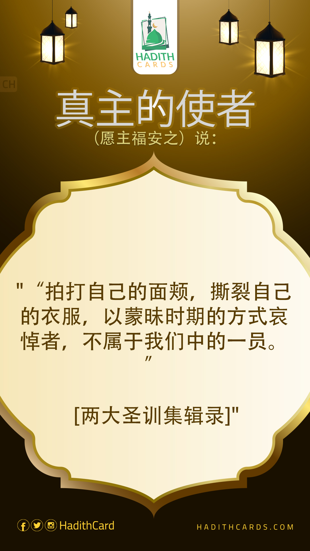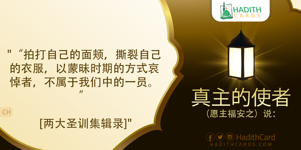拍打自己的面颊,撕裂自己的衣服,以蒙昧时期的方式哀悼者,不属于我们中的一员。