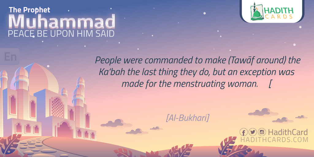 People were commanded to make (Tawāf around) the Ka‘bah the last thing they do, but an exception was made for the menstruating woman. [Al-Bukhari]
