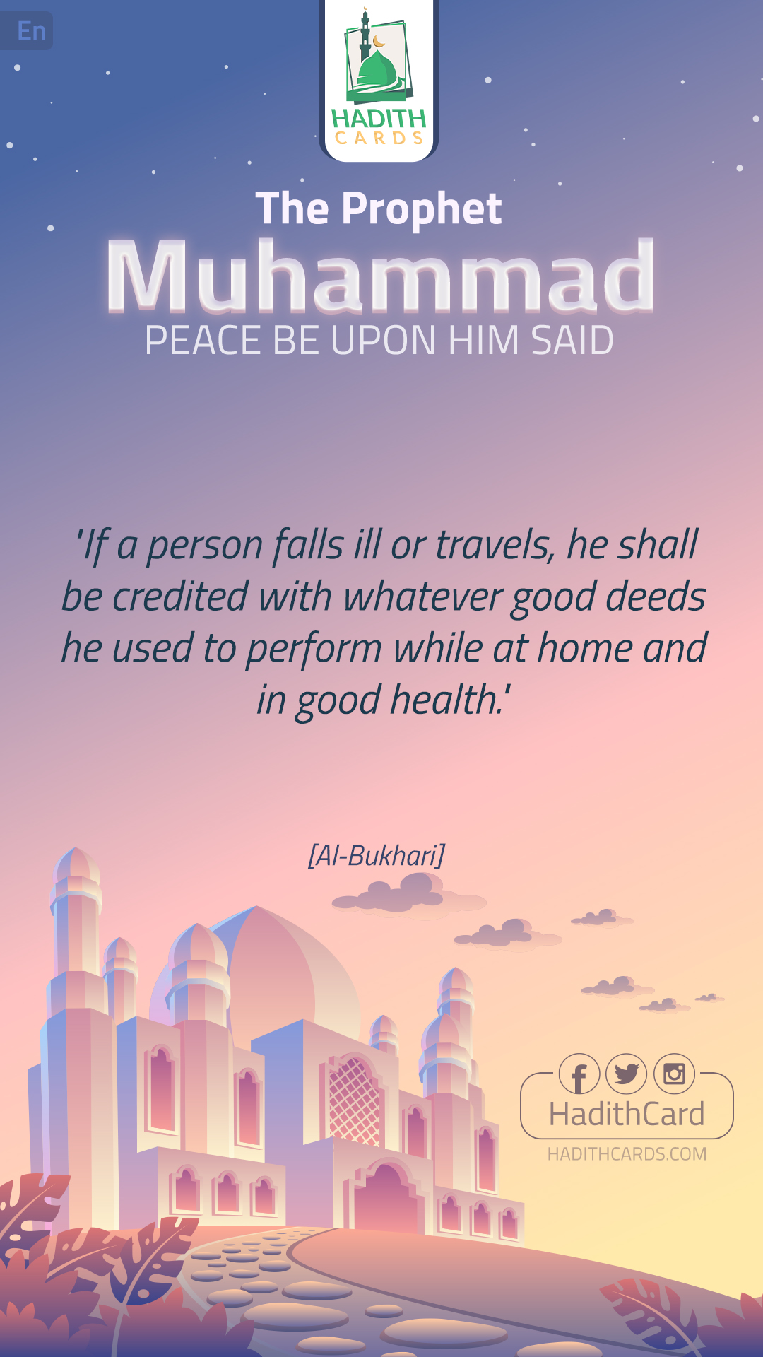 "If a person falls ill or travels, he shall be credited with whatever good deeds he used to perform while at home and in good health." [Al-Bukhari]
