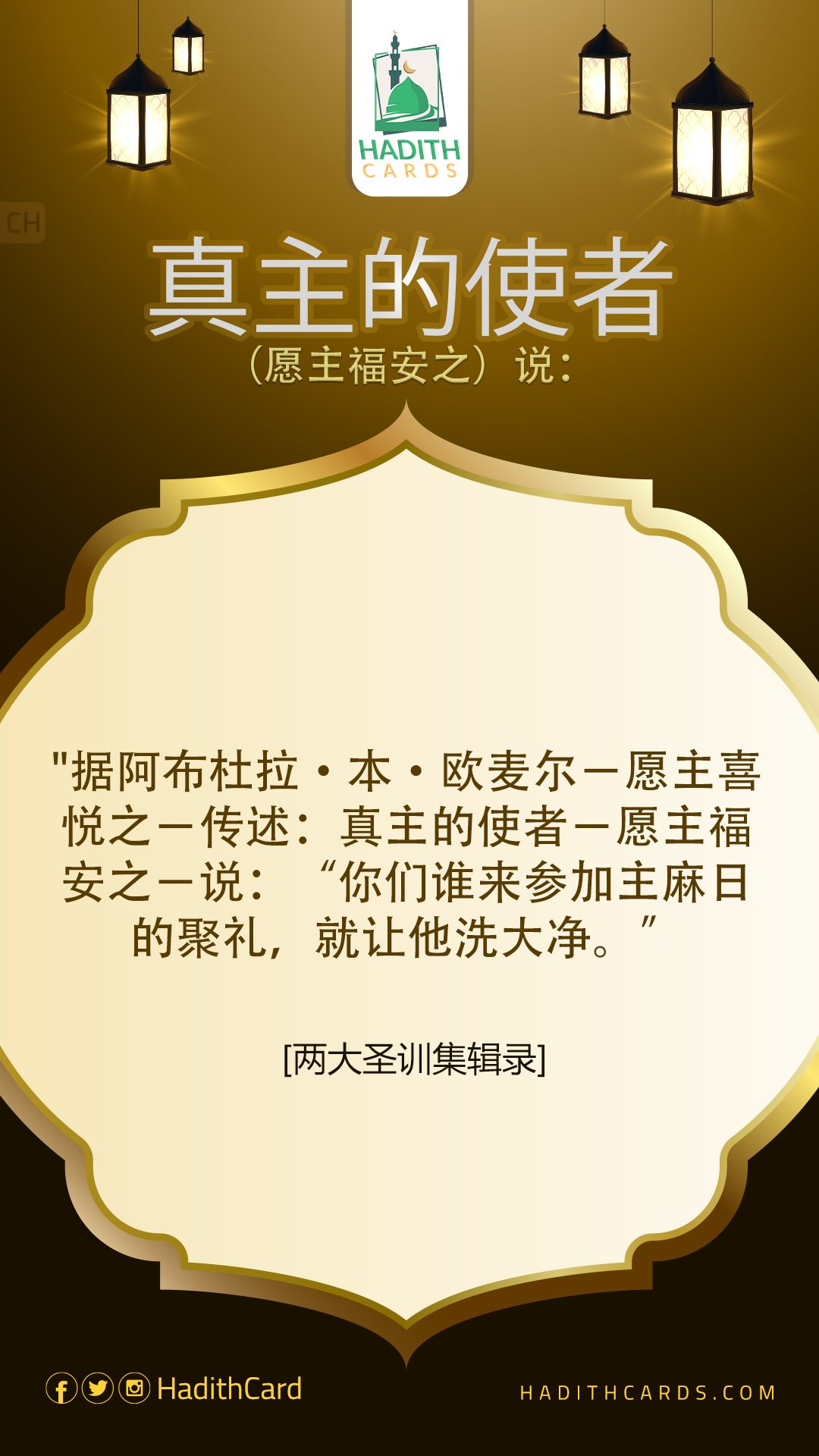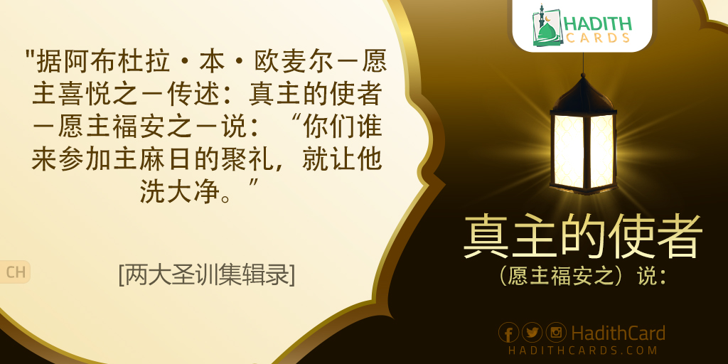 据阿布杜拉·本·欧麦尔-愿主喜悦之-传述:真主的使者-愿主福安之-说:“你们谁来参加主麻日的聚礼,就让他洗大净