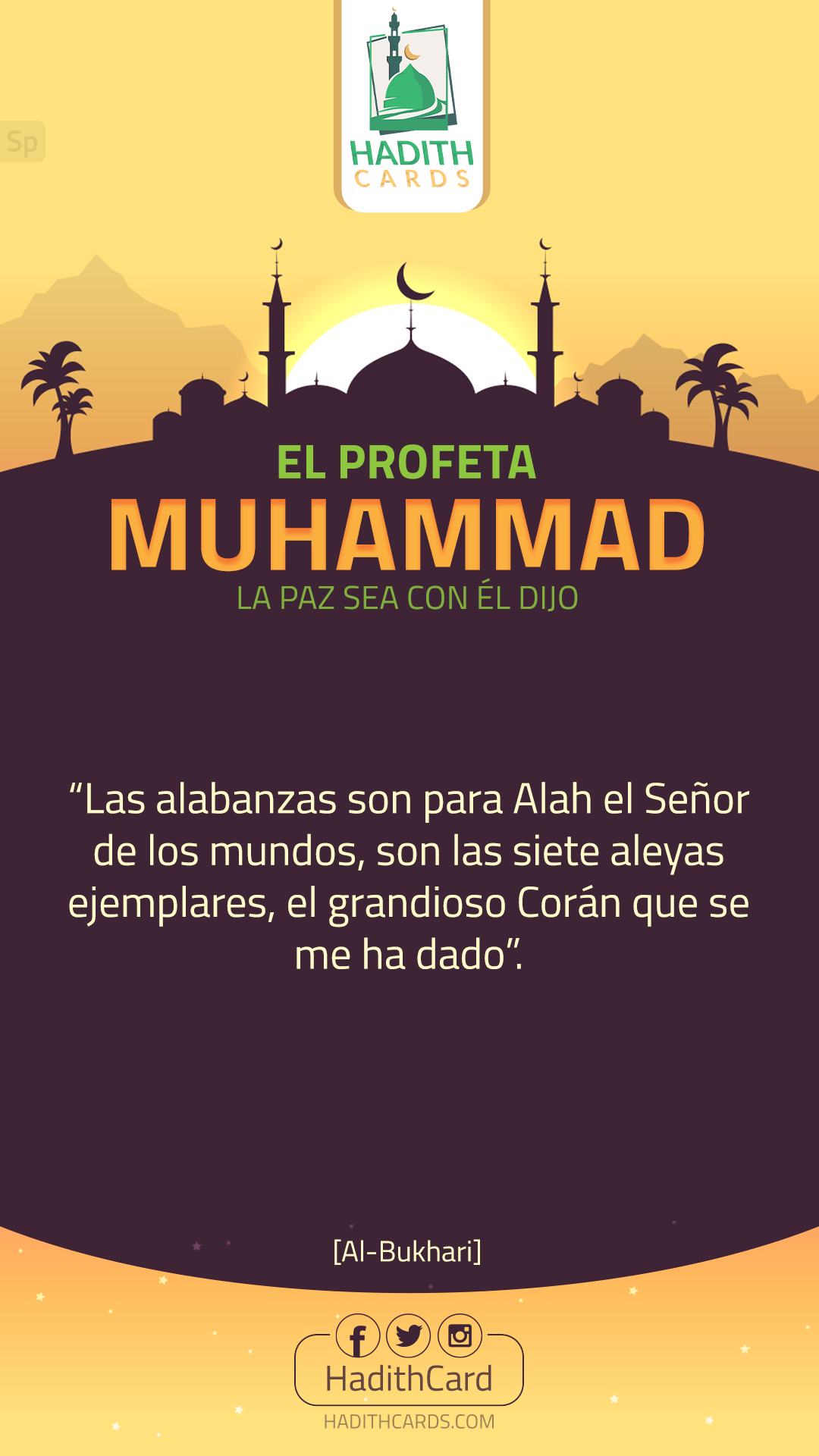 Las alabanzas son para Alah el Señor de los mundos, son las siete aleyas ejemplares, el grandioso Corán que se me ha dado