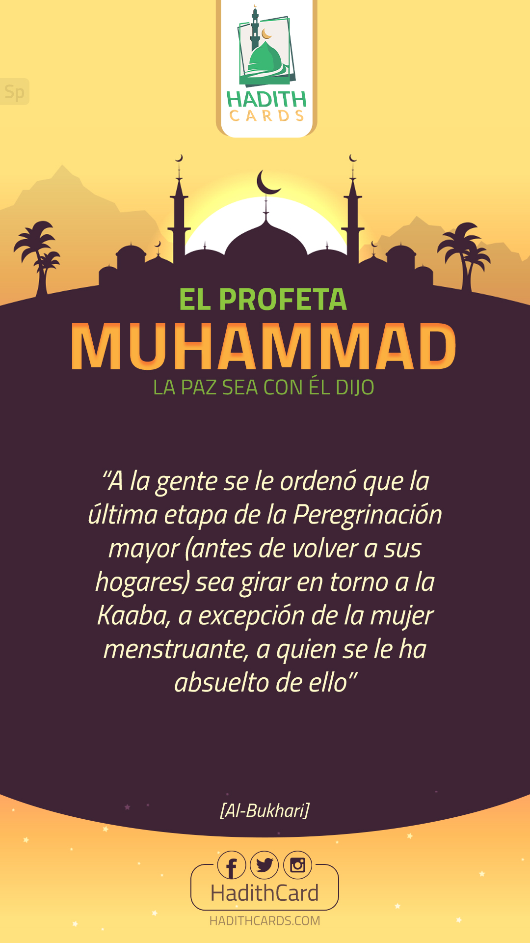 A la gente se le ordenó que la última etapa de la Peregrinación mayor (antes de volver a sus hogares) sea girar en torno a la Kaaba, a excepción de la mujer menstruante, a quien se le ha absuelto de ello