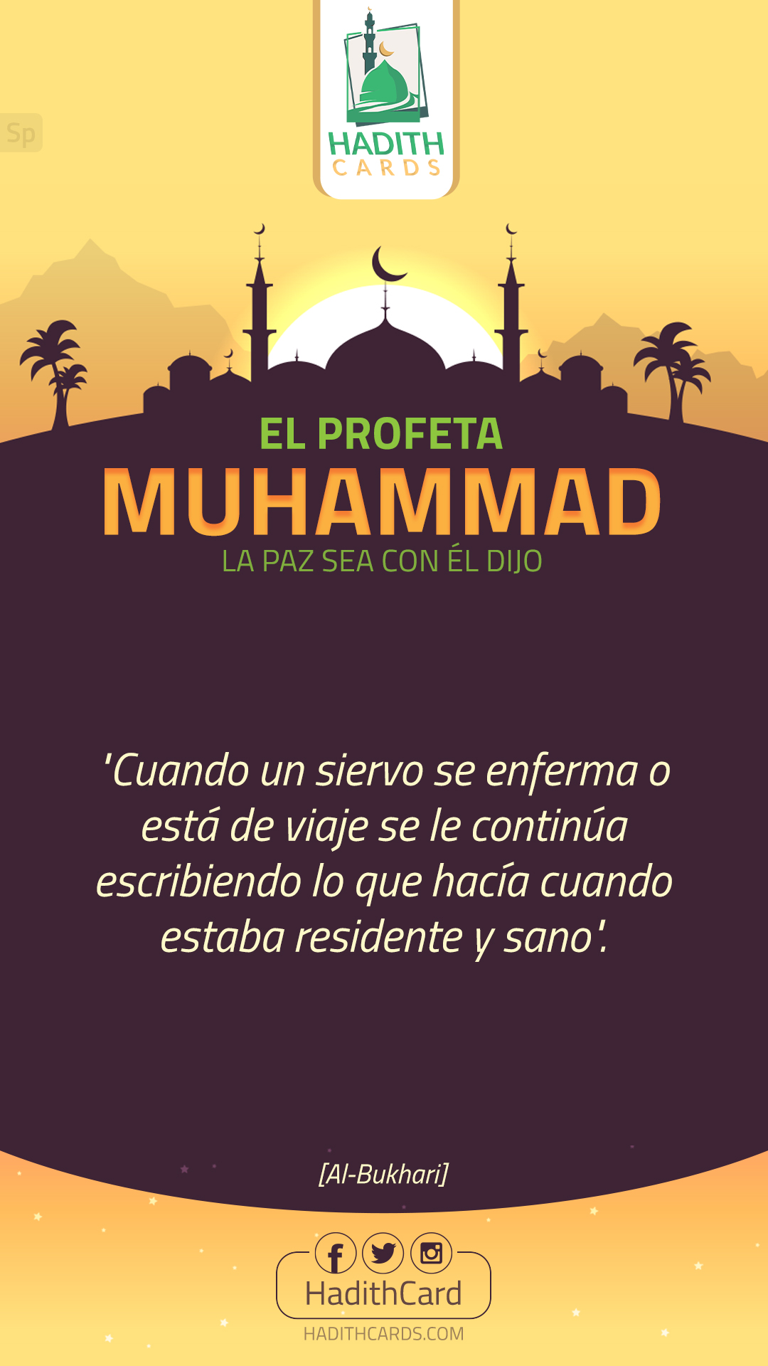 «إذا مَرِض العَبد أو سافر كُتِب له مثلُ ما كان يعمل مقيمًا صحيحًا». رواه البخاري