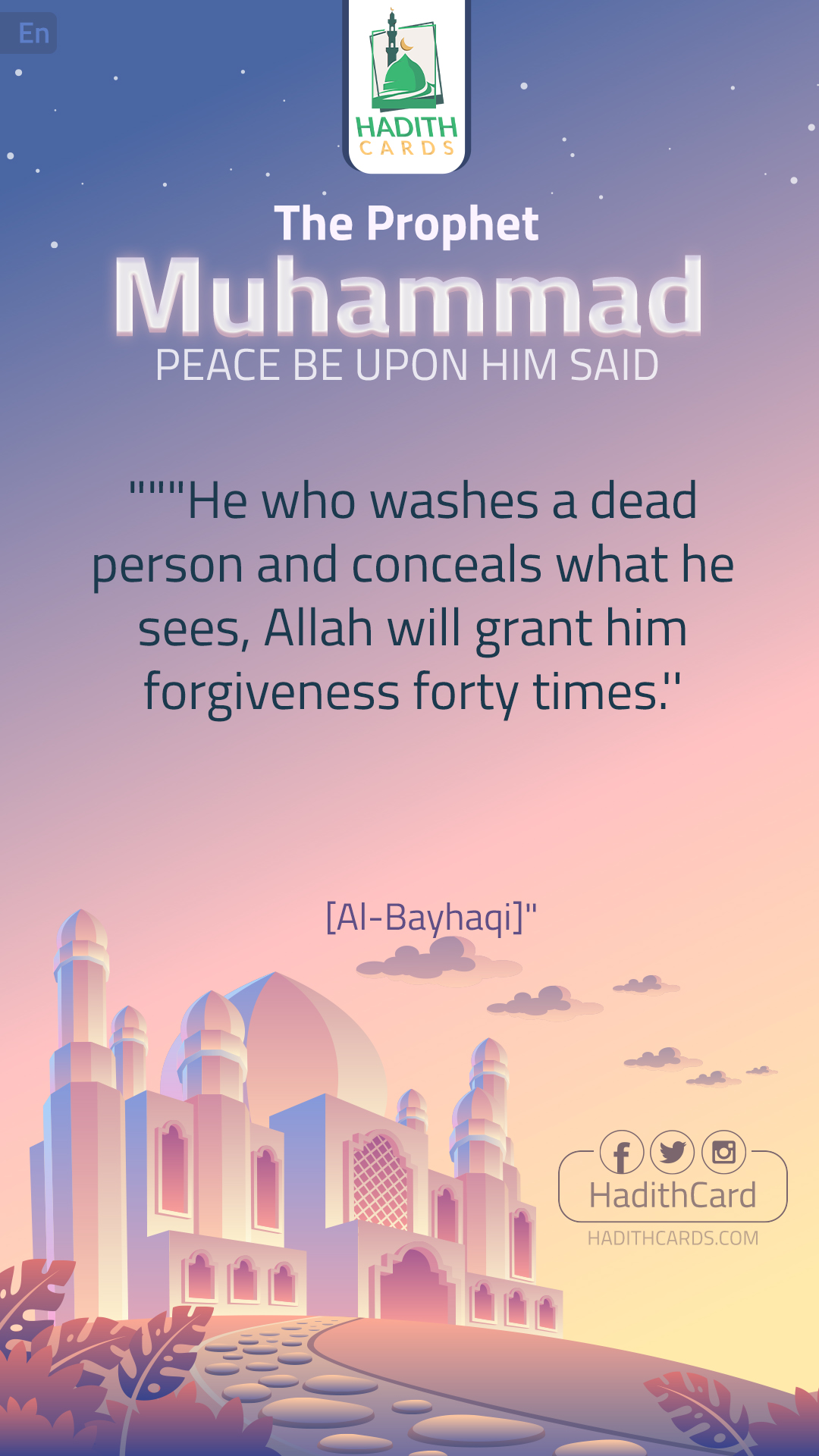 He who washes a dead person and conceals what he sees, Allah will grant him forgiveness forty times [Al-Bayhaqi]