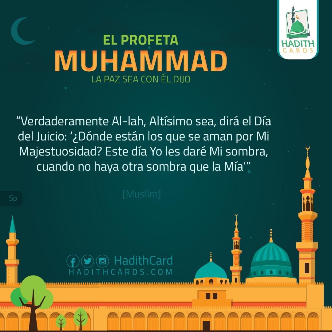 Verdaderamente Al-lah, Altísimo sea, dirá el Día del Juicio: ‘¿Dónde están los que se aman por Mi Majestuosidad? Este día Yo les daré Mi sombra, cuando no haya otra sombra que la Mía