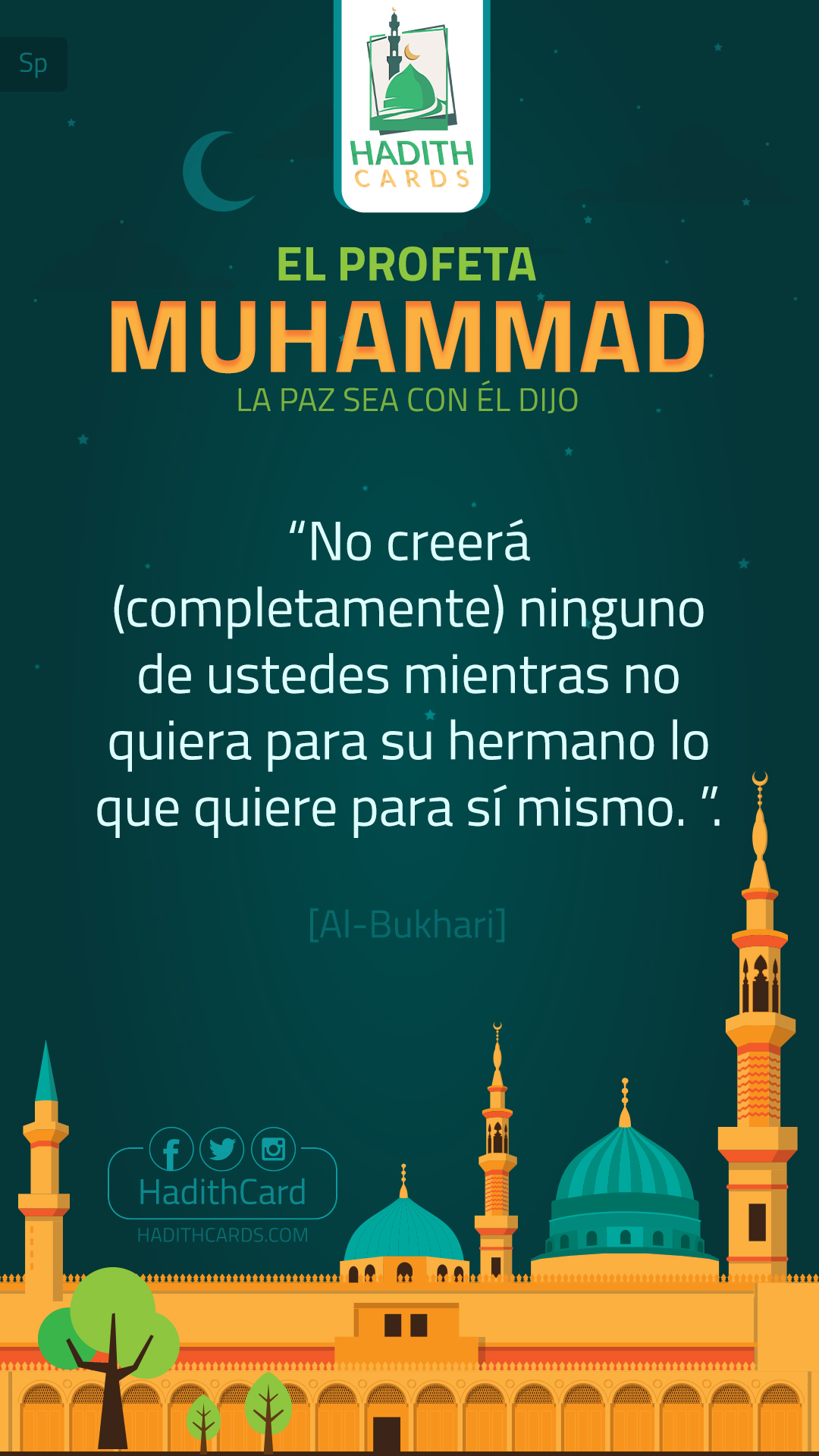 «لا يؤمنُ أحدُكم حتى يحبَّ لأخيه ما يحبُّ لنفسِه». (البخاري)