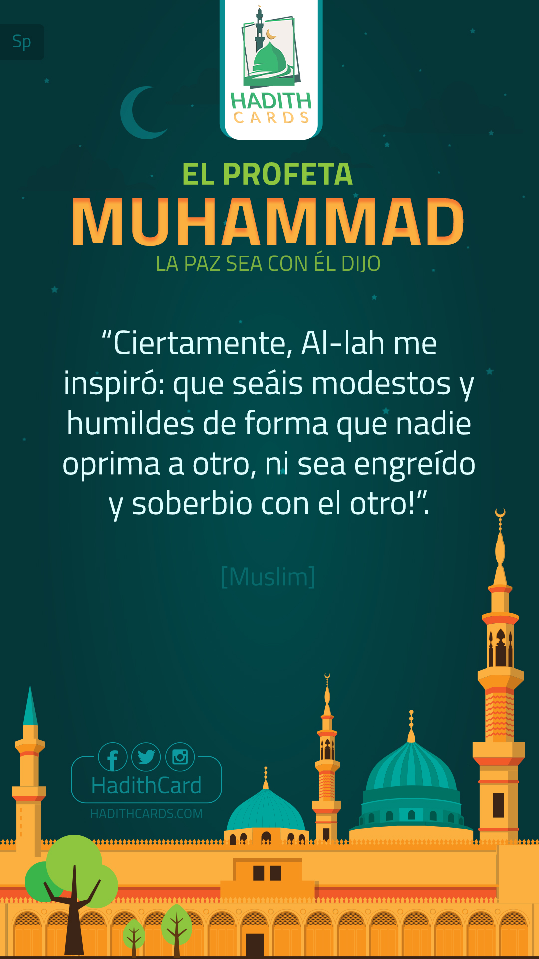 ¡Ciertamente, Al-lah me inspiró: que seáis modestos y humildes de forma que nadie oprima a otro, ni sea engreído y soberbio con el otro!