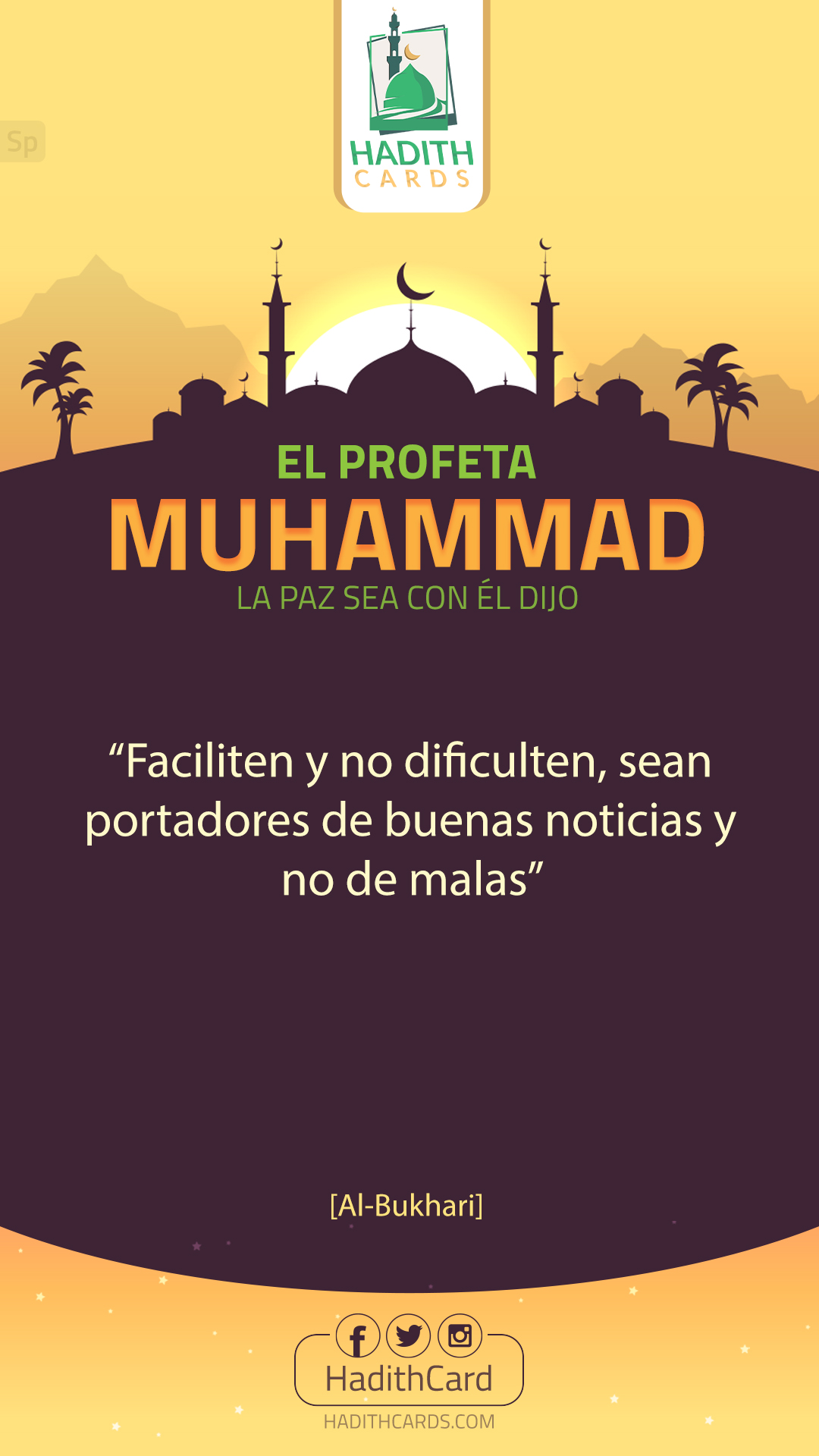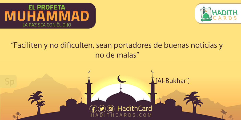 "«يَسِّرُوا وَلاَ تُعَسِّرُوا، وَبَشِّرُوا وَلاَ تُنَفِّرُوا». [صحيح.] - [متفق عليه.]"