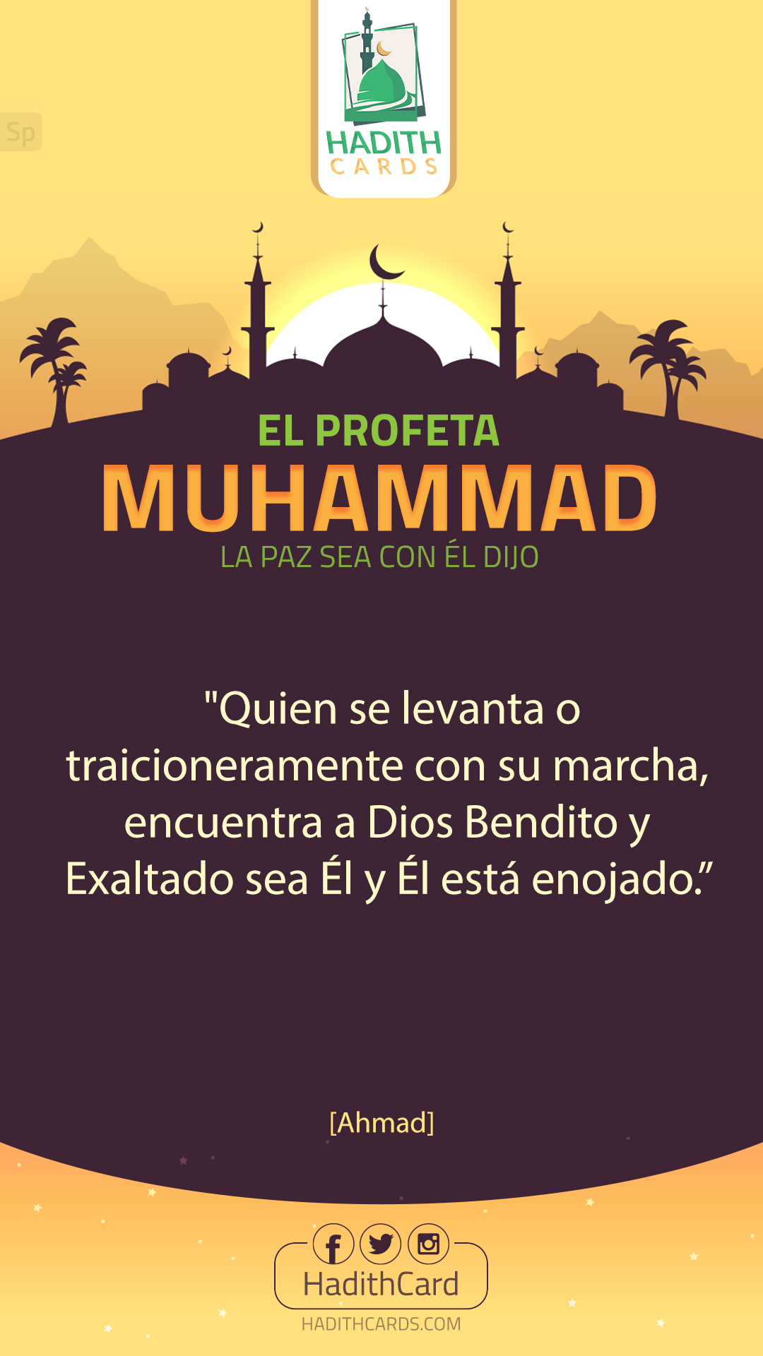 Quien se levanta o traicioneramente con su marcha, encuentra a Dios Bendito y Exaltado sea Él y Él está enojado
