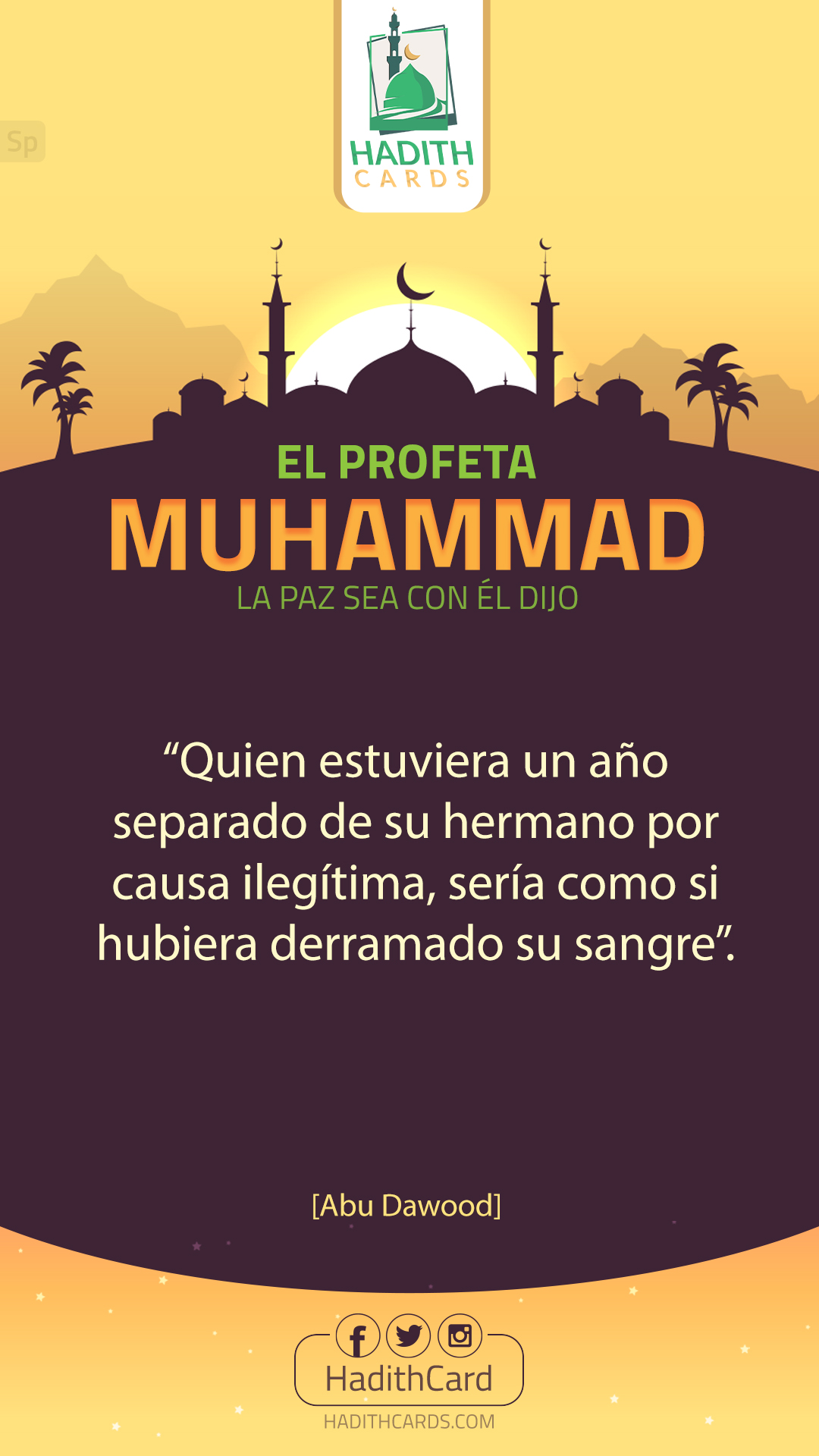 "«من هَجَر أخَاه سَنَة فهو كَسَفْكِ دَمِهِ». [صحيح.] - [رواه أبو داود وأحمد.]"