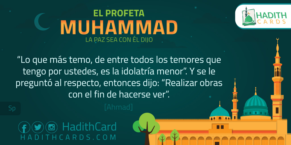 Lo que más temo, de entre todos los temores que tengo por ustedes, es la idolatría menor”. Y se le preguntó al respecto, entonces dijo: “Realizar obras con el fin de hacerse ver