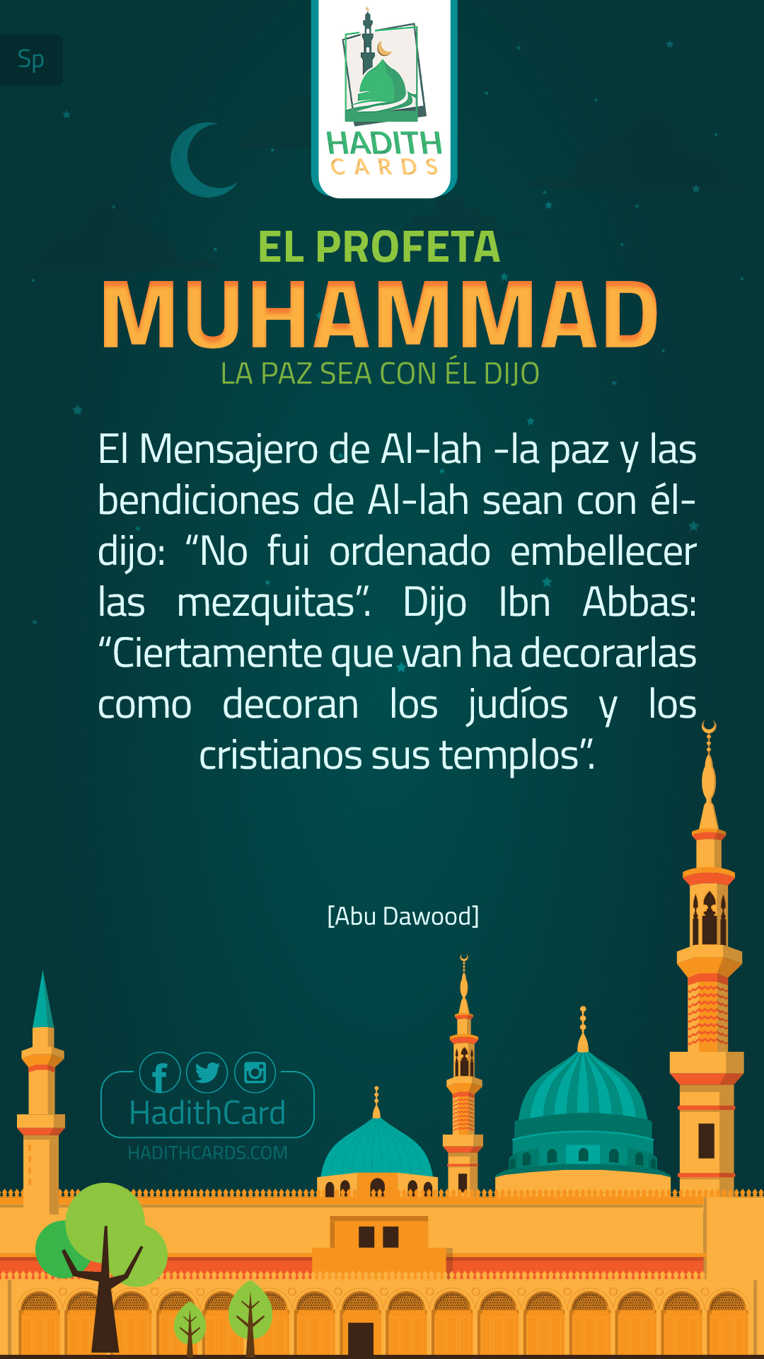 El Mensajero de Al-lah -la paz y las bendiciones de Al-lah sean con él- dijo: “No fui ordenado embellecer las mezquitas”. Dijo Ibn Abbas: “Ciertamente que van ha decorarlas como decoran los judíos y los cristianos sus templos