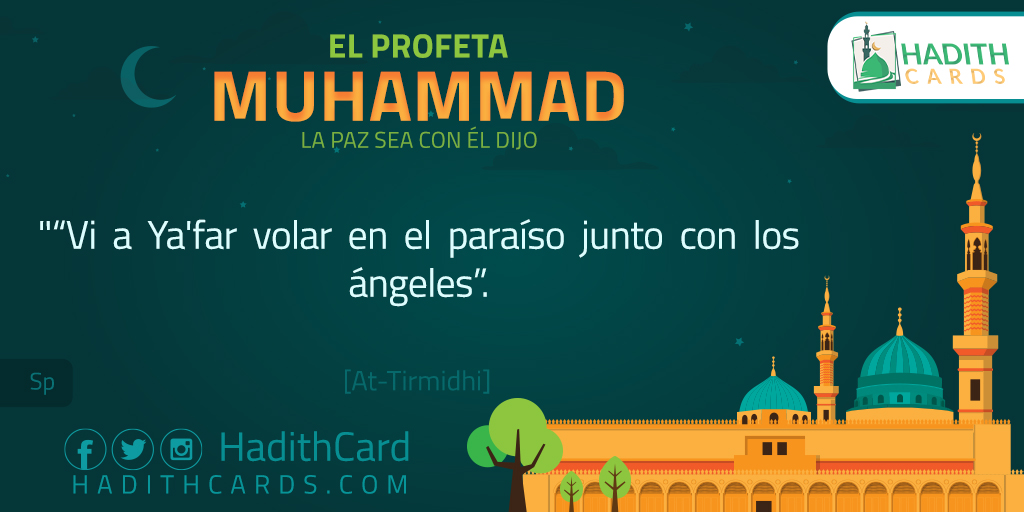 قال رسول الله -صلى الله عليه وسلم-: «رأيتُ جعفرًا يطير في الجنة مع الملائكة».[صحيح.] - [رواه الترمذي.]