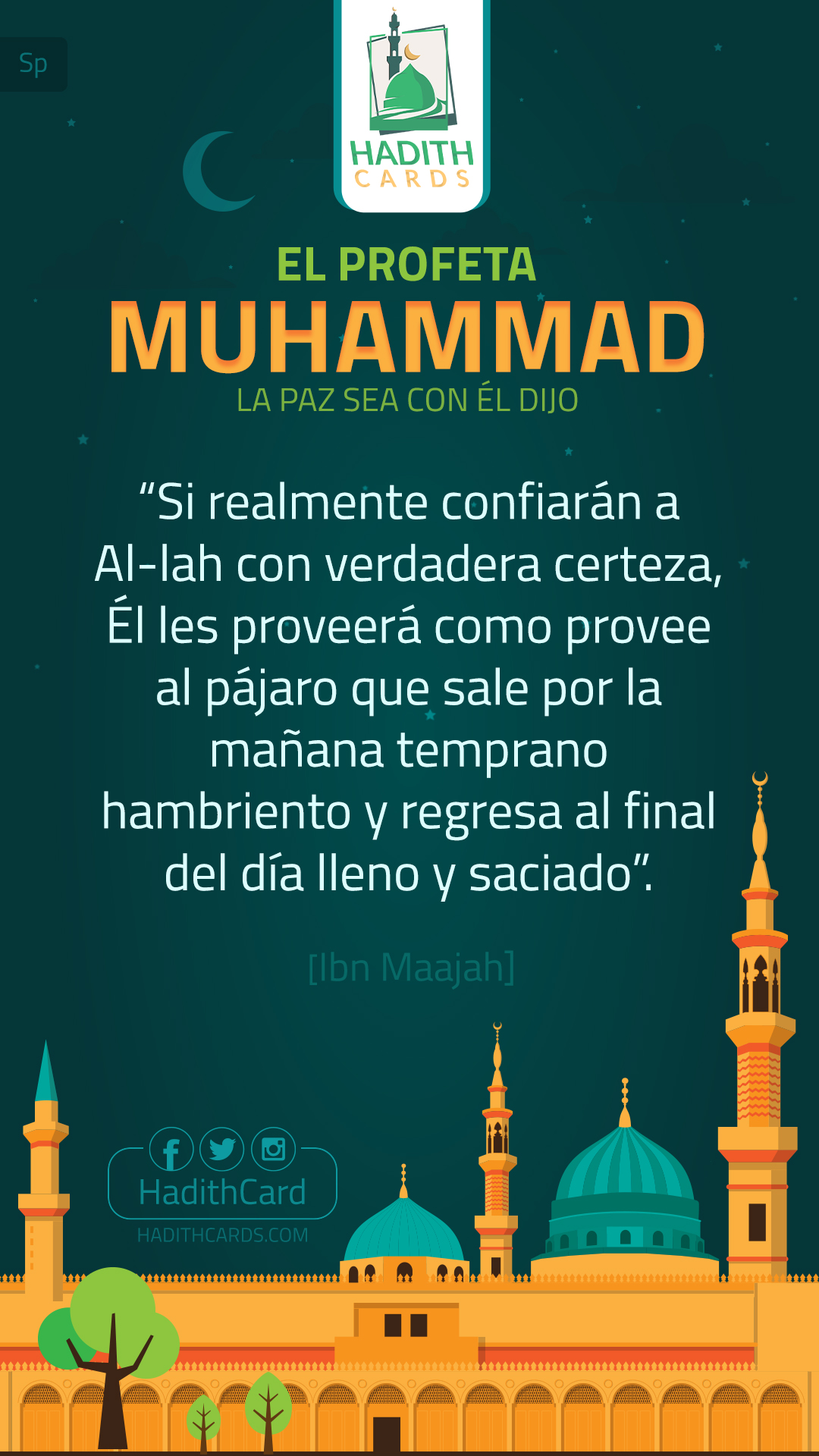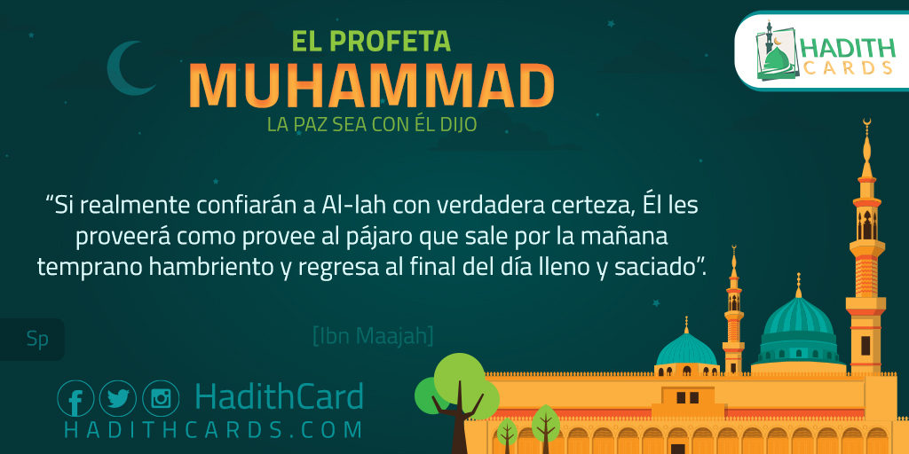 Si realmente confiarán a Al-lah con verdadera certeza, Él les proveerá como provee al pájaro que sale por la mañana temprano hambriento y regresa al final del día lleno y saciado