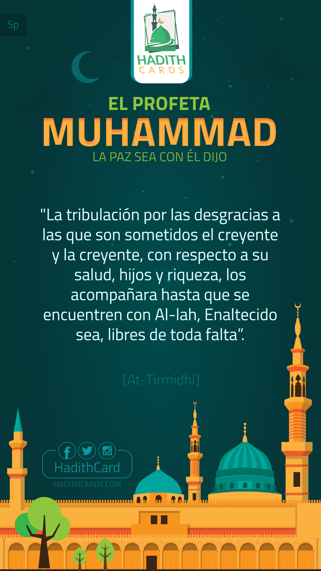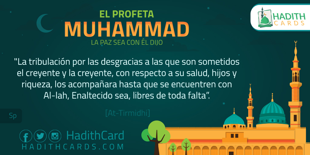 “La tribulación por las desgracias a las que son sometidos el creyente y la creyente, con respecto a su salud, hijos y riqueza, los acompañara hasta que se encuentren con Al-lah, Enaltecido sea, libres de toda falta