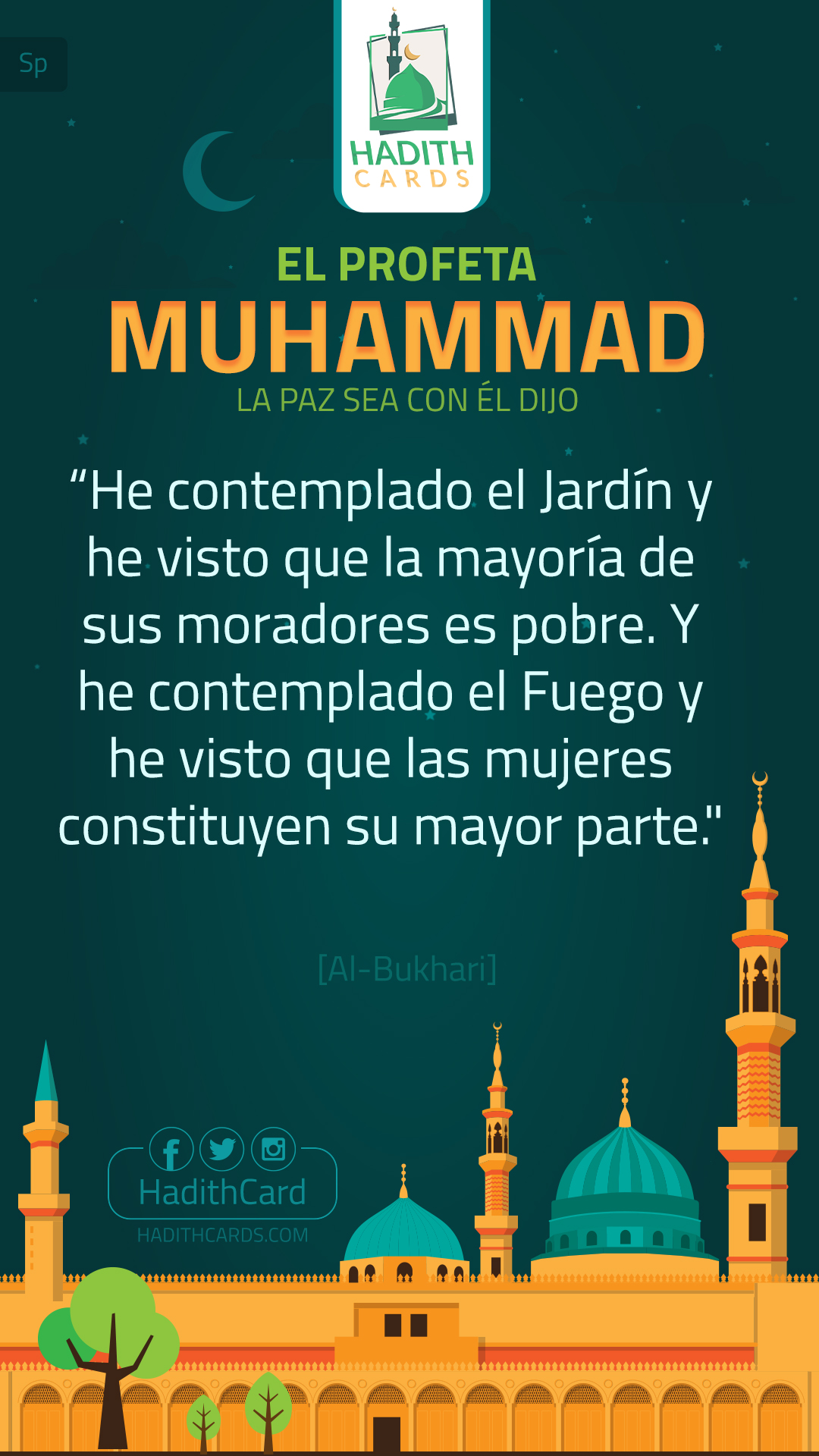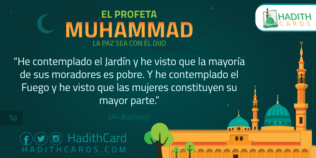 He contemplado el Jardín y he visto que la mayoría de sus moradores es pobre. Y he contemplado el Fuego y he visto que las mujeres constituyen su mayor parte