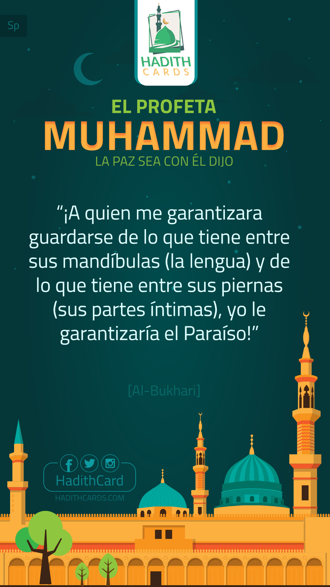 ¡A quien me garantizara guardarse de lo que tiene entre sus mandíbulas (la lengua) y de lo que tiene entre sus piernas (sus partes íntimas), yo le garantizaría el Paraíso!