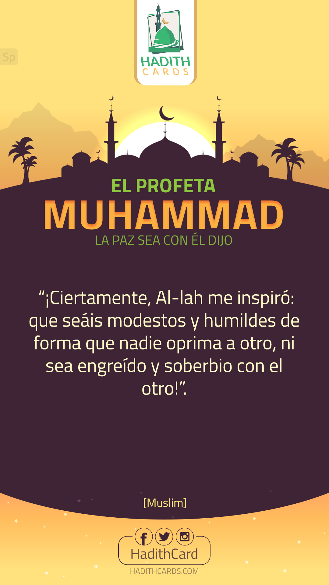 ¡Ciertamente, Al-lah me inspiró: que seáis modestos y humildes de forma que nadie oprima a otro, ni sea engreído y soberbio con el otro!