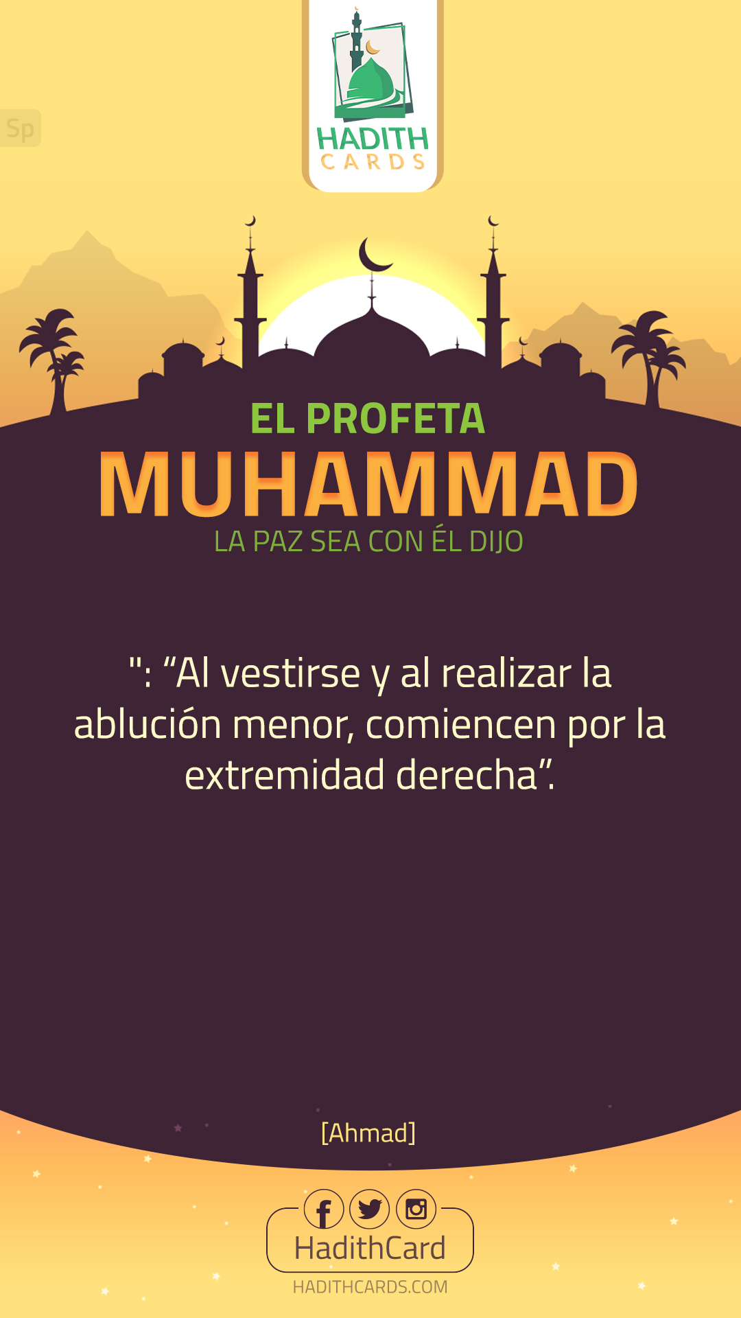 Al vestirse y al realizar la ablución menor, comiencen por la extremidad derecha