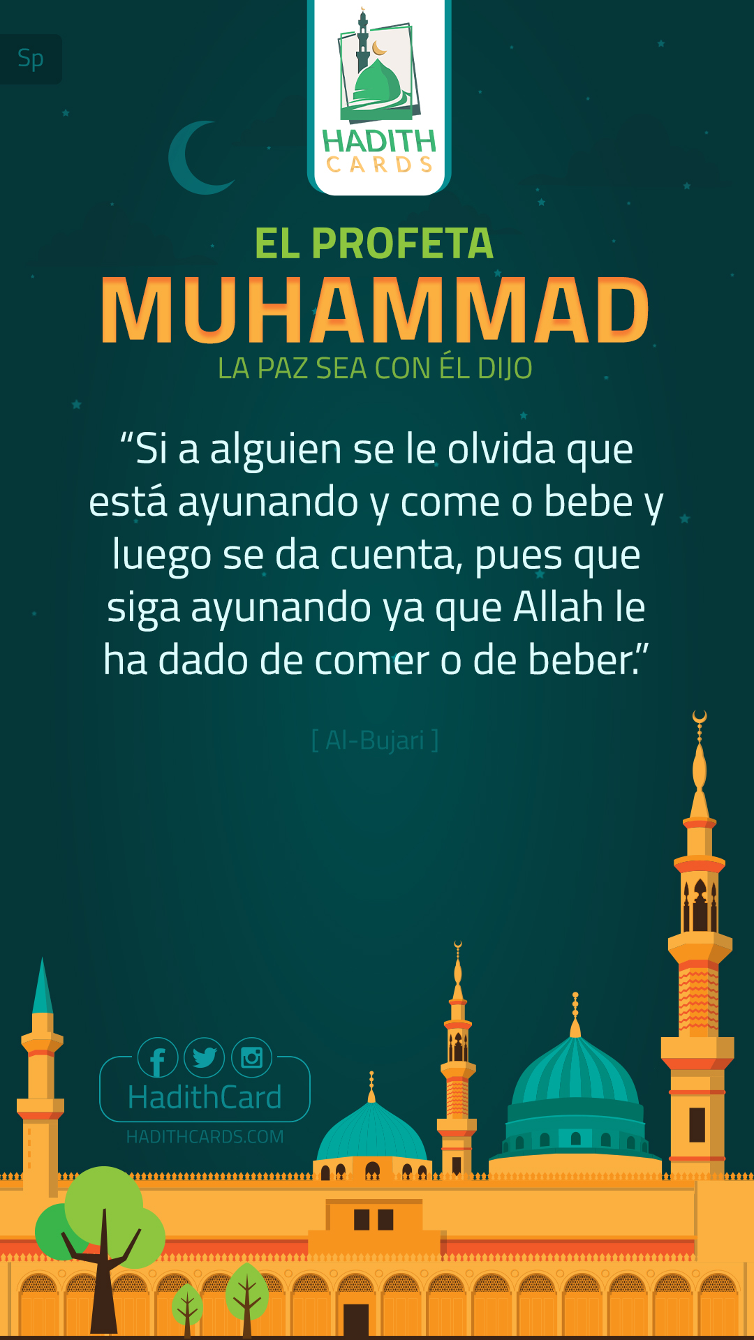 Si a alguien se le olvida que está ayunando y come o bebe y luego se da cuenta, pues que siga ayunando ya que Allah le ha dado de comer o de beber