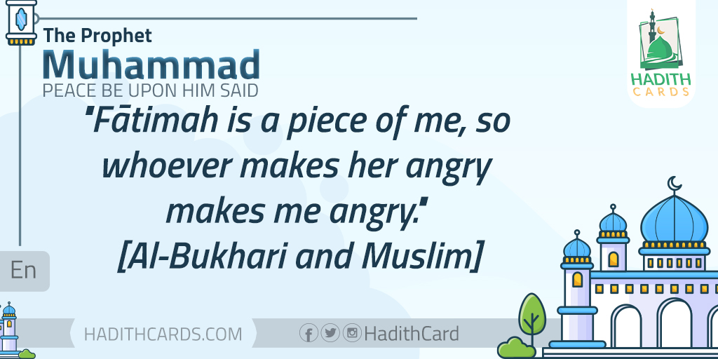 Fātimah is a piece of me, so whoever makes her angry makes me angry. [Al-Bukhari and Muslim