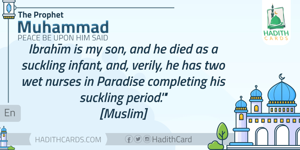 Ibrahīm is my son, and he died as a suckling infant, and, verily, he has two wet nurses in Paradise completing his suckling period. [Muslim]