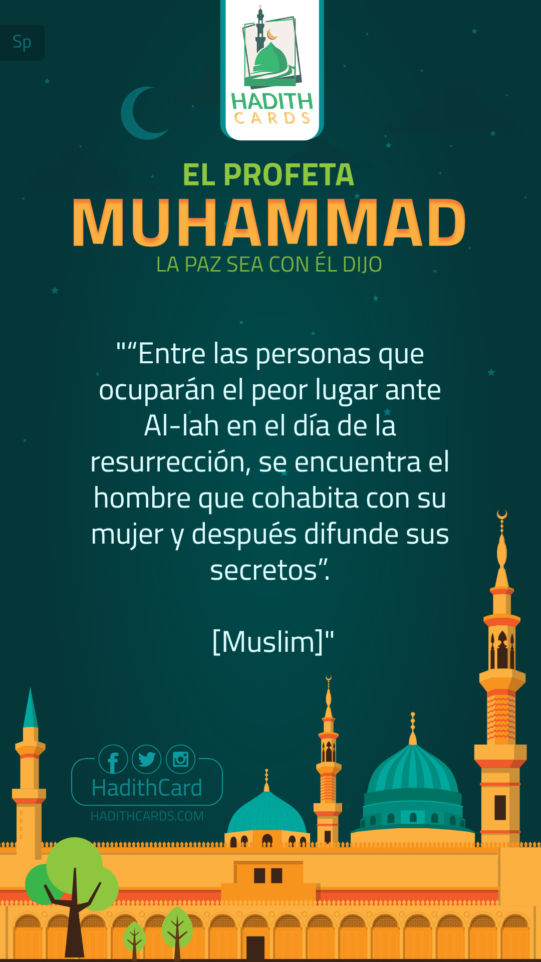 Entre las personas que ocuparán el peor lugar ante Al-lah en el día de la resurrección, se encuentra el hombre que cohabita con su mujer y después difunde sus secretos