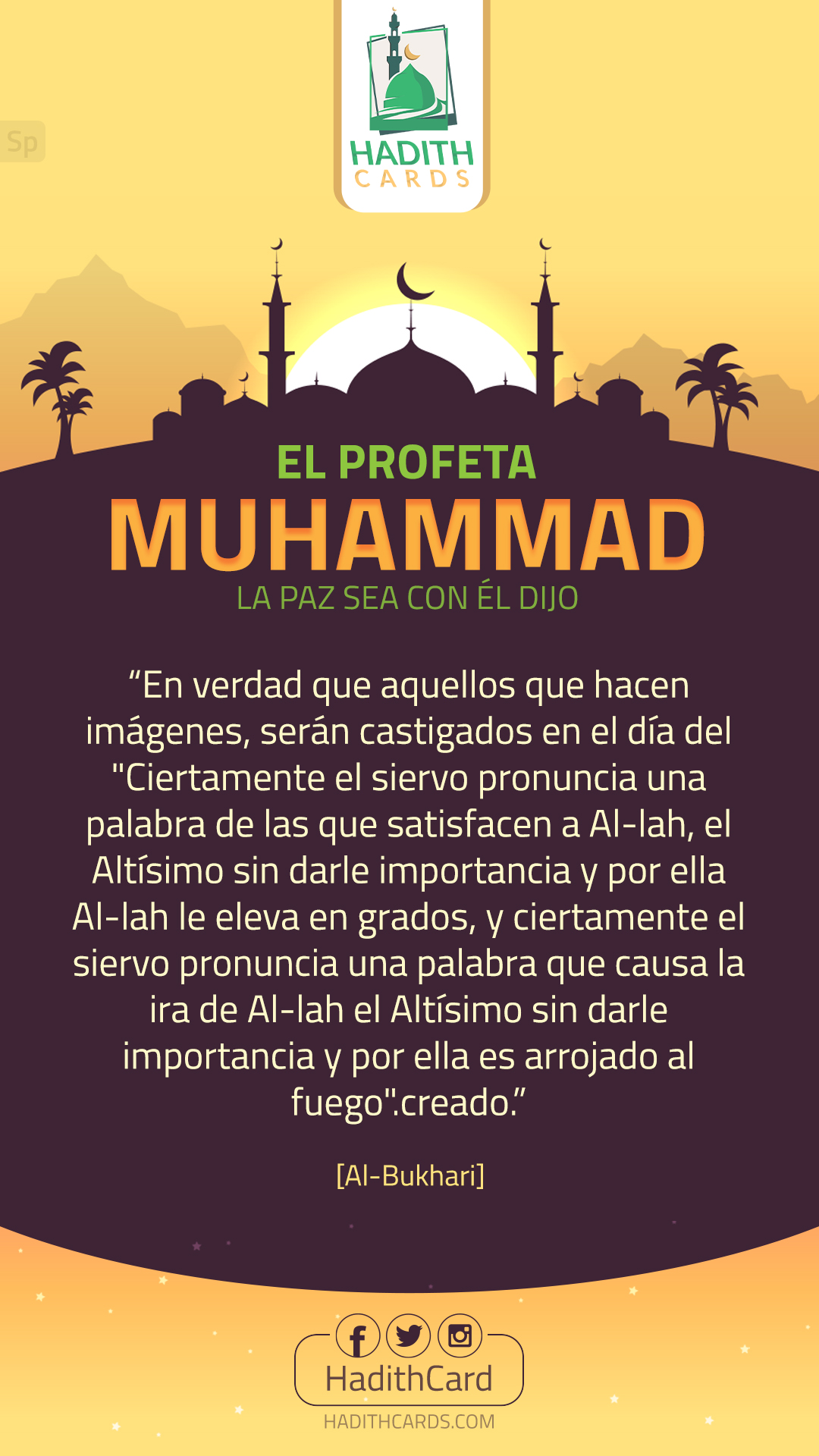 Ciertamente el siervo pronuncia una palabra de las que satisfacen a Al-lah, el Altísimo sin darle importancia y por ella Al-lah le eleva en grados, y ciertamente el siervo pronuncia una palabra que causa la ira de Al-lah el Altísimo sin darle importancia y por ella es arrojado al fuego