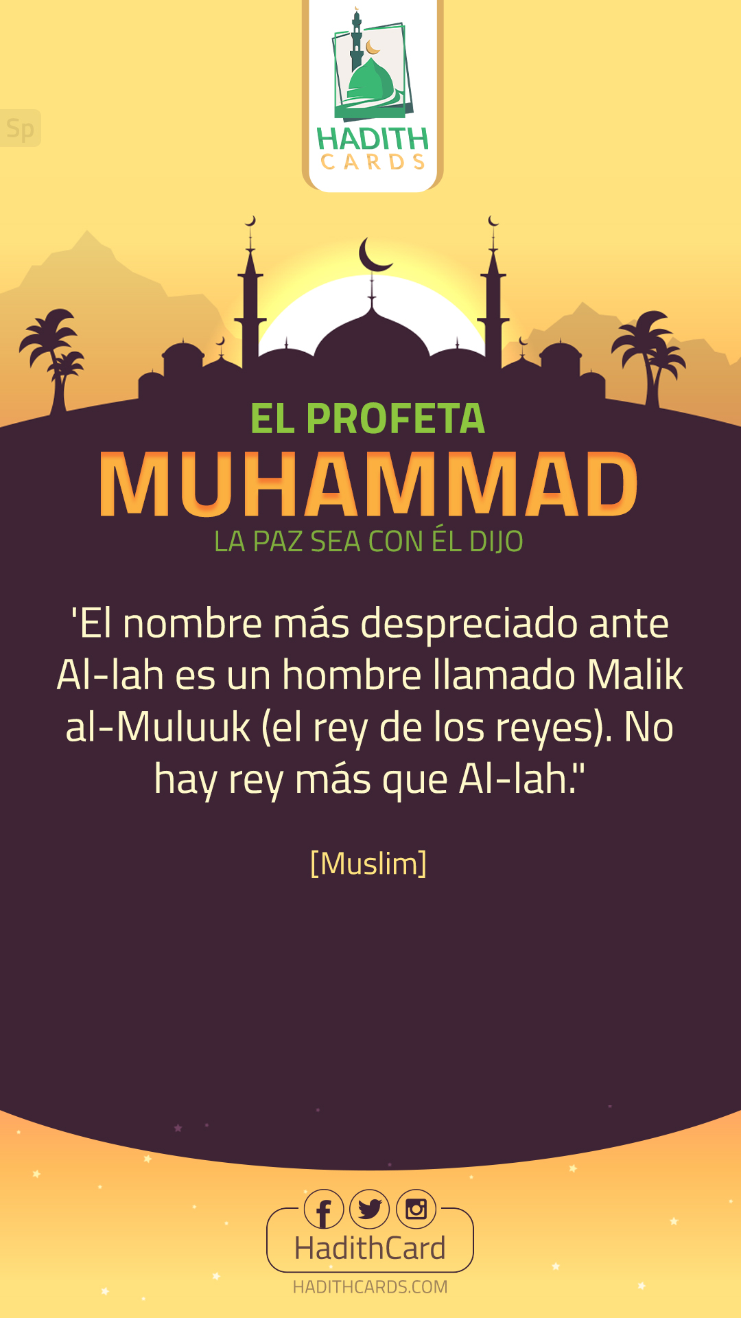 El nombre más despreciado ante Al-lah es un hombre llamado Malik al-Muluuk (el rey de los reyes). No hay rey más que Al-lah