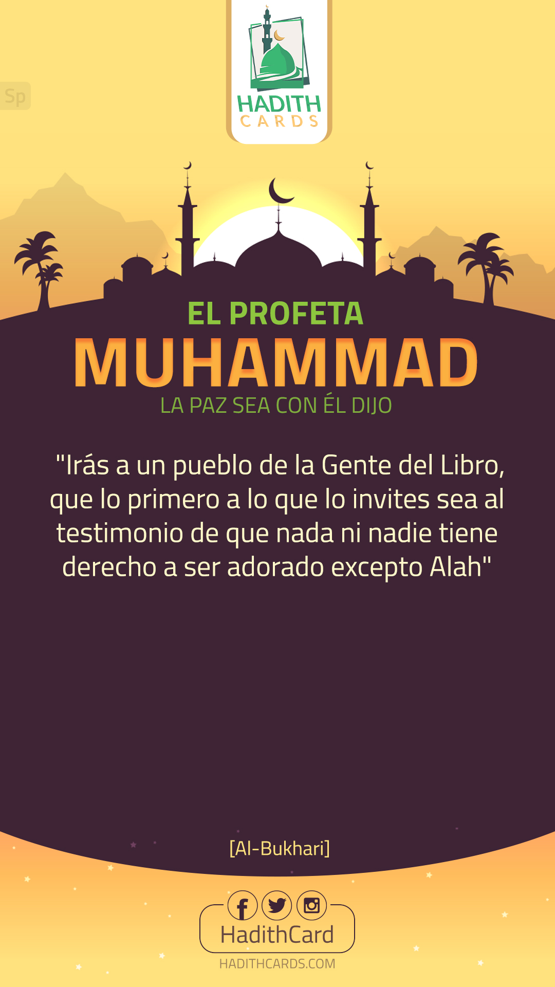 Irás a un pueblo de la Gente del Libro, que lo primero a lo que lo invites sea al testimonio de que nada ni nadie tiene derecho a ser adorado excepto Alah