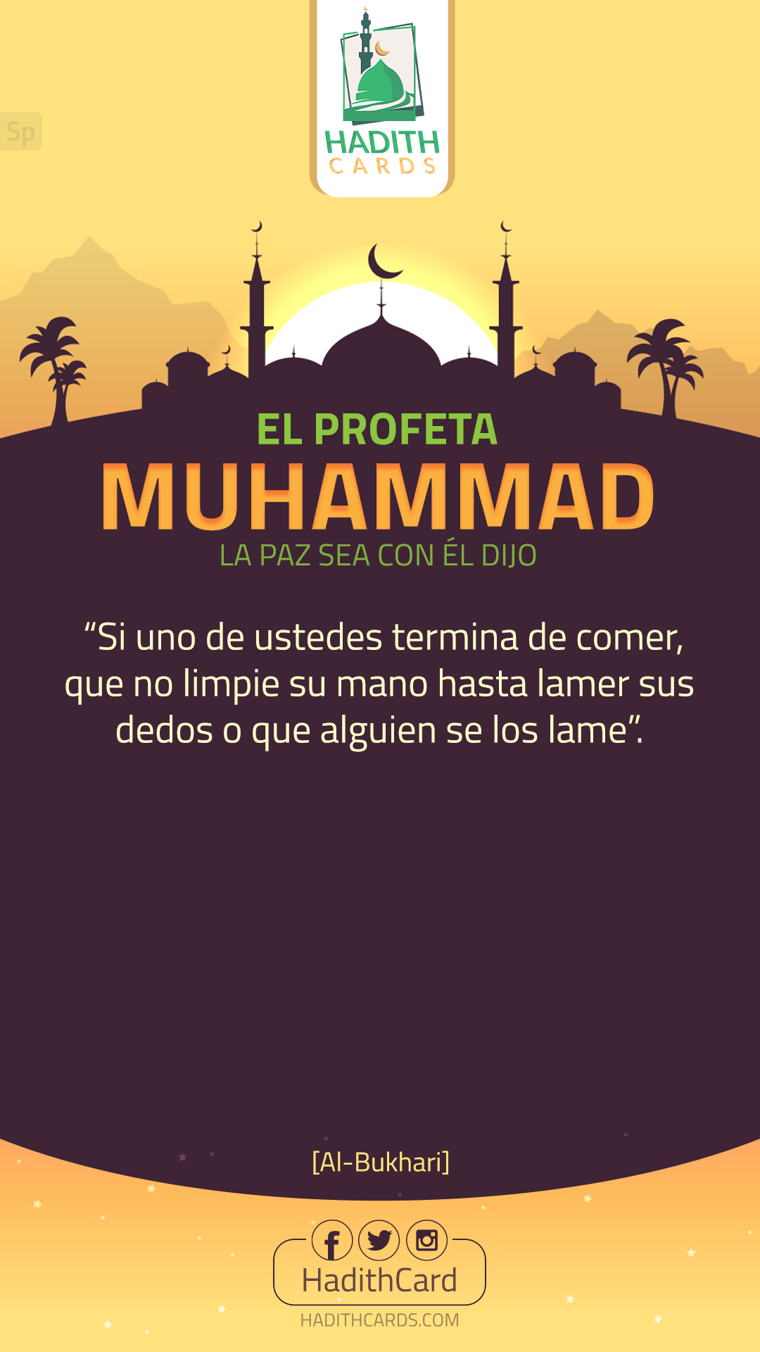 Si uno de ustedes termina de comer, que no limpie su mano hasta lamer sus dedos o que alguien se los lame