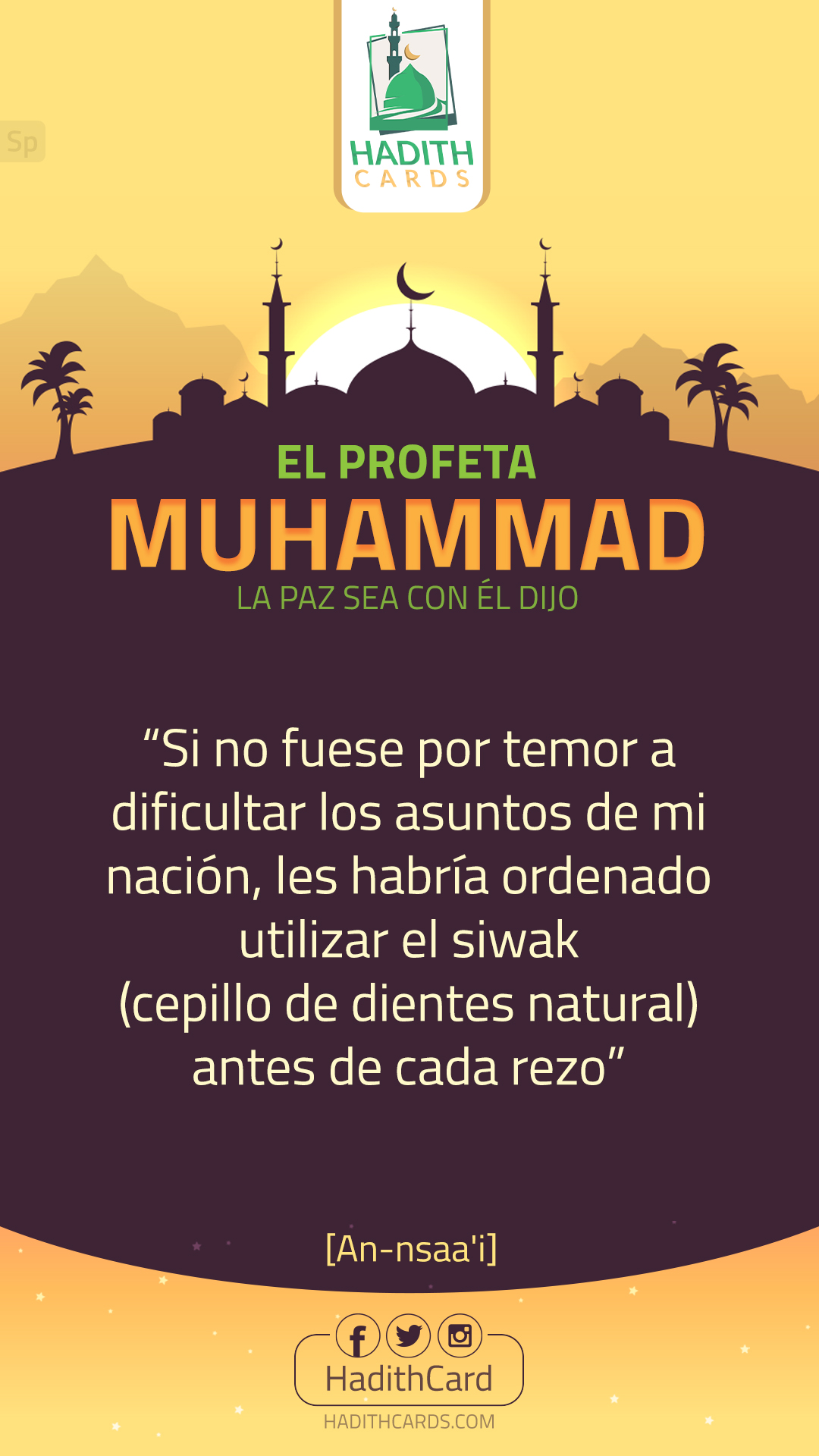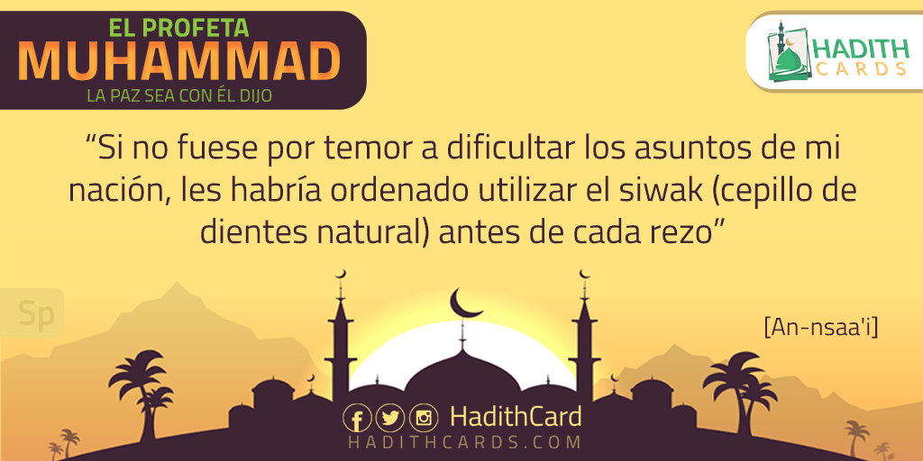 Si no fuese por temor a dificultar los asuntos de mi nación, les habría ordenado utilizar el siwak (cepillo de dientes natural) antes de cada rezo