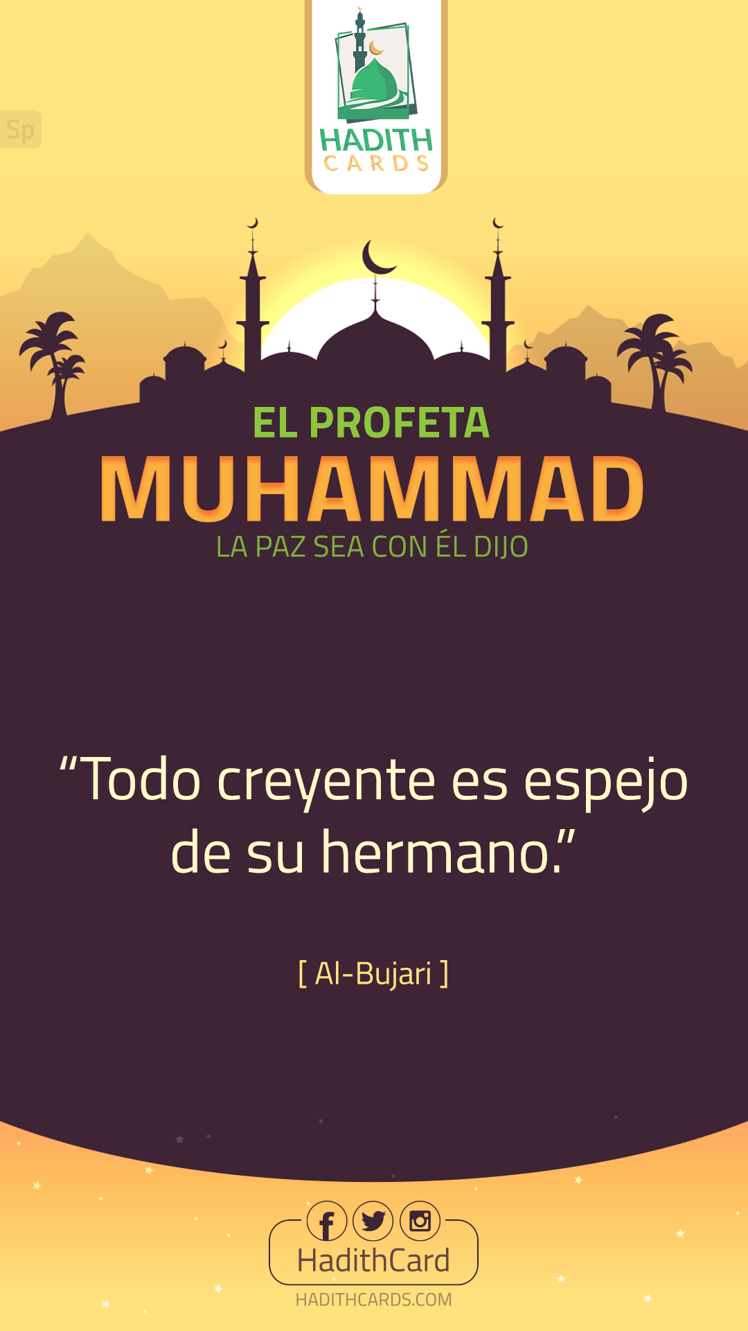 عن أبي هريرة -- عن رسول الله -صلى الله عليه وسلم- قال: «الْمُؤْمِنُ مِرْآةُ أَخِيهِ الْمُؤْمِنِ». (الترمذي)