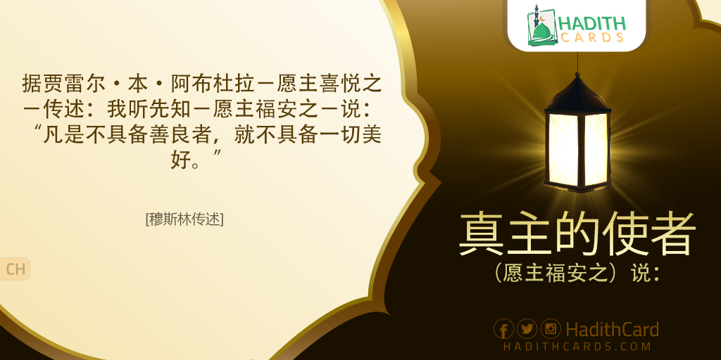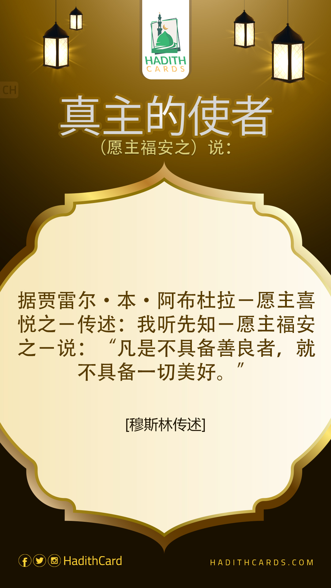 据贾雷尔·本·阿布杜拉-愿主喜悦之-传述:我听先知-愿主福安之-说:“凡是不具备善良者,就不具备一切美好。