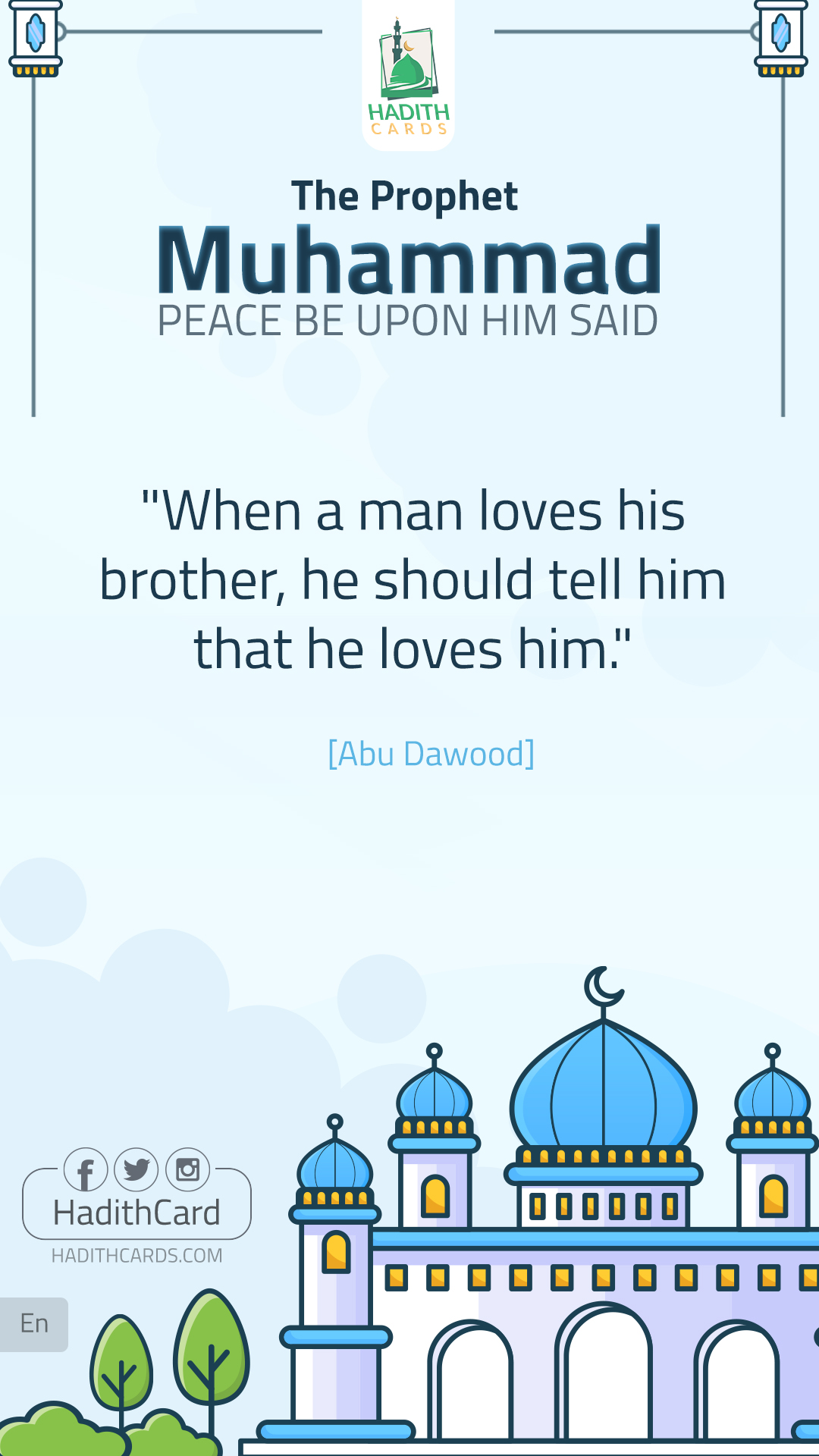 «إِذَا أَحَبَّ الرَّجُلُ أَخَاهُ، فَلْيُخْبِرْهُ أَنَّهُ يُحِبُّهُ». (أبو داود)