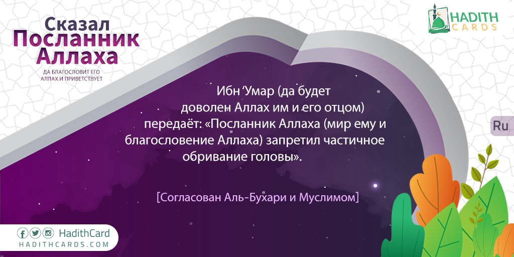 Ибн ‘Умар (да будет доволен Аллах им и его отцом) передаёт: «Посланник Аллаха (мир ему и благословение Аллаха) запретил частичное обривание головы